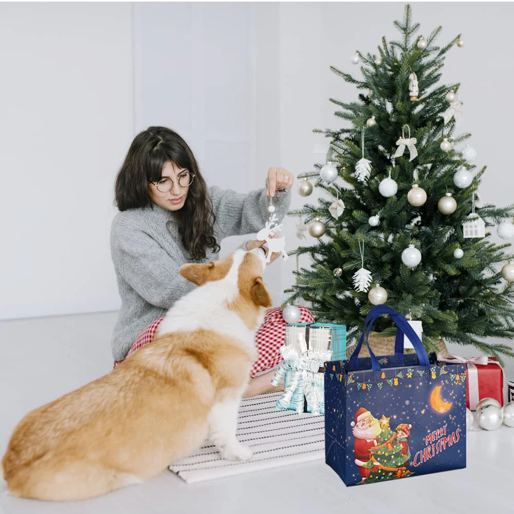 12Pcs Christmas Tote Bags Large Christmas Gift Bags with Handles Multifunctio...
