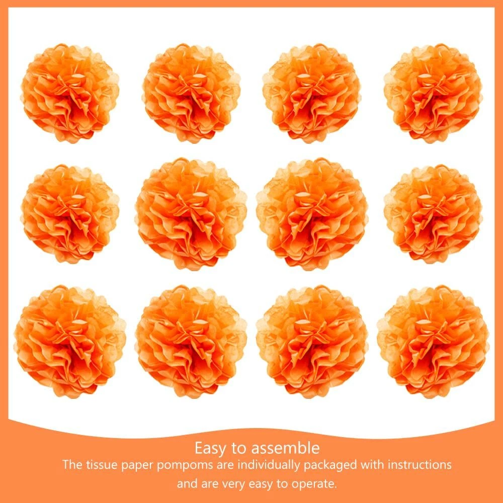Gorgeous Party Ceiling Wall Decorations Tissue Paper Pompom Flower Ball Description: Material: This paper pompom is made of recyclable tissue paper, it is eco-friendly and easy to store. Size: Diameter 25 cm/10 in+30cm/12 in. Colour: Orange. Quantity: 12 Pcs; 10in Flower Ball ......................... 6 Pcs; 12in Flower Ball ......................... 6 Pcs. SPECIFICITIES: - These paper pom-poms are simple to install by separating each already divided layer of tissue paper and spreading it completely until it is fluffy. - This pack has a total of 2 sizes, different sizes are convenient for you to match, it will be more beautiful and attractive. APPLICATION: - Paper pom poms are perfect for combining with paper fans, garlands, honeycomb balls, paper banners, paper lanterns, paper streamers and more. - You can hang, stick, or place paper pom poms in any position as decorations for birthdays, wedding receptions, special anniversaries or graduation day events, as well as house decorations. Warm Tip: 1. Paper pompoms are made of paper, please keep them away from open flames and take care to prevent fire when using and storing them. 2.Please put it out of the reach of children so that it will not be swallowed or torn. High Quality Paper Flower Ball Tissue Paper Pompoms Party Hanging Decorations 【Material】This paper pompom is made of high quality and durable paper. And it is easy to install, you just need to open the package and unfold it completely. 【Size】 Diameter 25 cm/10 in+30cm/12 in. 【Package Includes】6 Pcs(10in)+6 Pcs(12in); Colour: Orange. 【Perfect Decoration 】These beautiful paper pompoms are the decoration for festivals and parties, creating a backdrop with a sense of ambiance for the party. Paper pompom hanging decorations are perfect for birthdays, weddings parties, photo booths, nursery decorations ,Christmas or any other celebration.