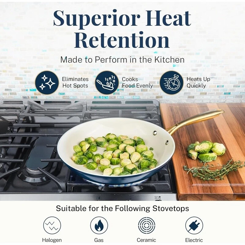 You may also like Cold Brew Coffee Maker 51oz Two Lids BPA Free Dishwasher Safe Reusable New 21.67 USD 22.81 USD Free shipping 5% off 12pc Toddler Dining Set Stackable Plates Bowls Cups BPA Free Dishwasher Safe New 20.8 USD 21.89 USD Free shipping 5% off 4-Tier Expandable Stackable Shoe Rack Metal Organizer Storage 20 Pairs New 26.18 USD 27.56 USD Free shipping 5% off 8 Piece BPA-Free Bowl Set W/ Airtight Lids Microwave Freezer Dishwasher Safe New 29.4 USD 30.95 USD Free shipping 5% off 12-Piece Stubby Combination Wrench Set Chrome Vanadium Steel Automotive Tool New 17.55 USD 18.47 USD Free shipping 5% off AR500 Steel Shooting Target Laser Cut Neon Color 1/2 Inch Thick Silhouette New 59.37 USD 62.49 USD Free shipping 5% off Truck Trailer Loading Ramp Kit Quick Assembly ATV Lawn Mower Snowmobiles New 51.01 USD 53.69 USD Free shipping 5% off RV Water Pressure Regulator Brass Reduces 40-50 PSI Protects Hoses Plumbing New 16.0 USD 16.84 USD Free shipping 5% off 1200 Lumen Rechargeable LED Work Light Magnetic Handle Portable Folding New 23.93 USD 25.19 USD Free shipping 5% off 450lbs Mini Trampoline Indoor Rebounder Exercise Gym Low Impact Fitness New 77.07 USD 81.13 USD Free shipping 5% off 10-in-1 Steam Mop Handheld Cleaner Fast Heat Chemical Free W/ Accessories New 94.99 USD 99.99 USD Free shipping 5% off 15Amp Corded Circular Saw 7-1/4in Blade 5500RPM Adjustable Bevel Cutting New 93.81 USD 98.75 USD Free shipping 5% off Enhance your culinary collection with the Nonstick Ceramic Pots and Pans 12 Piece Kitchen Cookware Set, expertly designed in a refined Navy Cream finish. This heavy-duty set features a robust construction and a double-coated nonstick ceramic surface, delivering superior durability and excellent food release. Engineered for healthier cooking, these pans require minimal oil or butter, making them perfect for health-conscious chefs. With ergonomically designed stay-cool handles and the capability to withstand oven temperatures up to 500˚F, this versatile cookware transitions seamlessly from stovetop to oven. Ideal for everything from daily meals to special occasions, this set combines elegance with practicality, making it a splendid addition to any kitchen. Complete Kitchen Cookware Set: Includes 8. 5" skillet, 9. 5" shallow square pan with tempered glass lid, 10. 25" frying pan with tempered glass lid, 1 Qt pot with tempered glass lid, 2. 5 Qt saucepan with tempered glass lid, 5 Qt stock pot with lid and stainless steel steamer Heavy-Duty Construction: Built to last with a strong foundation and a high-performance nonstick coating, ensuring long-term durability and resilience in the kitchen. Elegant Navy and Cream Finish: Adds a touch of sophistication to your kitchen, blending seamlessly with both modern and classic decor. Ultra-Nonstick Ceramic Coating: Advanced double-coated surface ensures effortless food release and quick cleanup, reducing the need for oils and enhancing your cooking experience. Stay Cool Handles: Ergonomically crafted handles stay cool during cooking, offering comfort and safety when transferring from stovetop to oven. Oven Safe Up to 500˚F: Provides versatile cooking options, perfect for a range of dishes, from quick sautés to slow-braised recipes. Compatible with Multiple Stovetops: Suitable for gas, electric, ceramic, and halogen stovetops, and partially compatible (fry pans and sauce pans only, not the stock pot) with induction ovens. Health-Conscious Cooking: Made without harmful chemicals like PFOA, PFOS, and cadmium, promoting a safer, healthier kitchen environment. Health-Conscious Cooking: Made without harmful chemicals like PFOA, PFOS, and cadmium, promoting a safer, healthier kitchen environment. Ideal Gift Choice: A practical and thoughtful gift for various occasions, enhancing the kitchens of newlyweds, college grads, or anyone who appreciates well-made cookware. You may also like Nonstick Induction Cookware Set 13pcs White Granite Pots Pans Easy Clean White 90.06 USD 94.8 USD Free shipping 5% off Ceramic Nonstick Cookware Set 12 Piece Aluminum Pots Pans Kitchen Utensils New 47.08 USD 49.56 USD Free shipping 5% off Cooking Pot with Lid Non Stick High Qualified Kitchen 2.1 Quart Aluminum New 41.23 USD 43.4 USD Free shipping 5% off Nonstick Ceramic Cookware Set 12 Piece Kitchen Pots Pans Dishwasher Safe Durable 98.93 USD 104.14 USD Free shipping 5% off 12-Piece Nonstick Cookware Set Easy Clean Dishwasher Safe Pots Pans Tools Black 167.5 USD 176.32 USD Free shipping 5% off 16 Piece Non-Stick Ceramic Cookware Set Induction Safe Dishwasher Safe Pots Pans 67.26 USD 70.8 USD Free shipping 5% off 18 Pc Nonstick Cookware Set Ceramic Soft Grip Dishwasher Safe Healthy Cooking US 88.92 USD 93.6 USD Free shipping 5% off 12 Piece Nonstick Aluminum Cookware Set Frying Pan Dutch Oven Baking Sheet New 112.86 USD 118.8 USD Free shipping 5% off