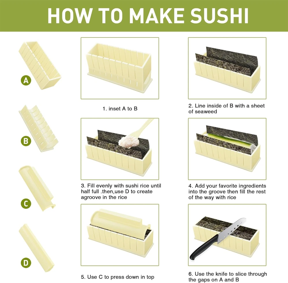 Store New Arrivals Add to Favorite View Feedback Contact Sushi Making Kit, 12 Pcs Sushi Maker Kit, Sushi Molds Press with Sushi Rice Mold Shapes, Sushi Maker Roller Kit, Sushi Kit for Beginners, DIY Home Onigiri Mold Sushi Tool Kitchen Accessories Description Item model number TIMS25 Style Modern Country of Origin China Theme Sushi Making Number of Pieces 1 Unit Count 1.0 Count Material Plastic Product Name Sushi Making Kit Seasons All Seasons Is Microwaveable No Included Components Sushi Making Kit Reusability Reusable Is Dishwasher Safe No Item Weight 1.87 pounds Special Feature Reusable Color White Shape Rectangular Recommended Uses For Product Sushi Product Dimensions 8.3"L x 8.3"W x 3.2"Th Product Care Instructions Hand Wash Only Size 12 Pcs Easy To Use: Whether you are a beginner, a world class professional sushi chef or a culinary student, this sushi making kit has everything you need to make an original snack in just a couple of minutes. With this kit, making sushi is easier than you might think. Become a sushi chef and enjoying this truly unique sushi party. Material: The sushi making kit is made of good quality pp material. That means they're healthy to use. You can rest assured that enjoying your sushi party with your family. Simple To Use: Say goodbye to failed sushi making experiences and wasted ingredients, this DIY sushi making kit for beginners will allow you to create restaurant quality sushi in minutes. It can be used without difficulty for both children and adults. Enjoy The Fun Of Cooking: With this sushi making kits, you can make your own sushi and share it with your family and friends. And you can explore the creative world of sushi making with your children at home, teach them new things, and develop their hands-on skills. Surprise Your Guests: Order this sushi kits for yourself or provide a DIY sushi set gift for a sushi lover and you're sure to win their admiration. Make squares, hearts, circles or triangles out of homemade sushi, nori wraps and rice that will impress your loved ones or dinner guests. Product Description Sushi Making Kit, 12 Pcs Sushi Maker Kit, Sushi Molds Press with Sushi Rice Mold Shapes, Sushi Maker Roller Kit, Sushi Kit for Beginners, TIMDAM DIY Home Onigiri Mold Sushi Tool Kitchen Accessories Features: Durable material Sent with different sushi shapes for choice. Enjoy fun of making DIY sushi with your families and friends. Perfect for beginners to make sushi roll. Provide a DIY sushi set gift for a sushi lover and you're sure to win their admiration EASY TO USE & PRACTICAL Whether you are a beginner, a world class professional sushi chef or a culinary student, this sushi making kit has everything you need to make an original snack in just a couple of minutes. With this kit, making sushi is easier than you might think. Become a sushi chef and enjoying this truly unique sushi party. Self-Contained Grooving The inclusion of a cutting mold within a sushi making kit serves to facilitate the uniform shaping and cutting of sushi rolls. Easy To Clean The smooth design of the sushi making gadget is designed to prevent sticking and can be cleaned in the dishwasher easily. SURPRISE YOUR GUESTS Order this sushi kits for yourself or provide a DIY sushi set gift for a sushi lover and you're sure to win their admiration! Make squares, hearts, circles or triangles out of home made sushi, nori wraps and rice that will impress your loved ones or dinner guests! Enjoy The Fun Of Cooking: With this sushi making kits, you can make your own sushi and share it with your family and friends. You can explore the creative world of sushi making with your children at home, teach them new things, and develop their hands-on skills. Easy to Prepare and Use: This sushi making tool for beginners makes learning easier at all stages and you can create restaurant quality sushi in minutes. It can be used without difficulty for both children and adults. Best sushi mold for you! ABOUT US We offer the best prices around on high quality products. Our E-store includes media such as books, movies, music and games while offering electronics, toys, sporting apparel, clothing, tools, general home, garden items and more. SHIPPING We are always working hard to ensure your package arrives as soon as possible. Please understand that some factors like weather, high postal traffic, and the performance of shipping companies are outside of our control. We offer free shipping to the lower 48 states and ship within 2 business days of payment, usually sooner. We do not accept P.O. Boxes. Please provide a physical address. RETURNS We offer a 30-Day Return Policy on items which you are not completely satisfied with. You have the option for a full-refund or an exchange of the item. No returns are available on items shipped outside of the USA. PAYMENT We accept PayPal. CONTACT US This page content is yet to come Please ad us to your favorite seller and visit again later Thank You CUSTOMER SATISFACTION We try our very best to make sure every customer is completely satisfied. If there's a problem, message us! We're happy to help.
