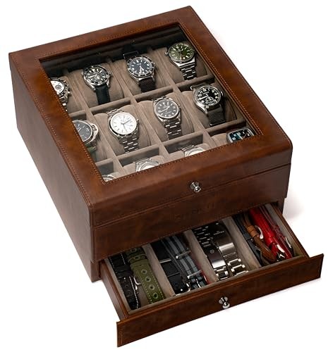 Return Policy Fast Delivery Trusted seller 12 Slot Leather Watch Box Organizer for Men - Display Case with Valet Drawer - Ideal for Large Wrist Watches and Jewelry Product Description 100% Velvet ⌚ THE BEST LEATHER WATCH BOX: this watch case and mens jewelry box is made of wood and covered with very high quality pu leather of a beautiful brown color. It is made by hand with special care on the finishes. ⌚ LUXURY WATCH CASE: The interior has 12 watch slots and it is made of very soft grey velvet, specially thought to store your timepieces with the best care possible. In the bottom part it has a valet drawer with a perfectly soft movement with four compartments so you can keep more watches or other mens jewelry. It has two stainless steel spheric handles with a beautiful finish. ⌚ PERFECT FOR WATCH LOVERS AND WATCH COLLECTORS: manufactured with very high quality standards to provide the care and exclusivity that your watches deserve ⌚ HIGH QUALITY WARRANTY: This product is fully d against any imperfection or malfunction. If t is any issue with this product please contact us and we will solve it or refund your money. ? SPECIAL GIFT FOR THAT PERSON YOU MOST CARE ABOUT: this watch holder for men is the best gift for someone special like your father, brother, husband, friend or boss. It comes in a beautiful chocolate brown hard box that will provide a delightful unboxing experience. Show your true appreciation for that special person with this high quality luxury watch box. Shipping Returns Payment Shipping Shipping is FREE to all addresses other than APO/PO boxes in the lower 48 states. All our stock ships from US-based warehouses. Shipped via USPS or UPS (depending on location and package weight) Unless stated otherwise, all orders will ship within 24-72 hours of your payment being processed. Check our feedback to see the great reviews of FAST shipping we offer. Returns Seller does not accept returns Payment We currently accept payment via eBay managed payments only. Once payment is cleared, we will dispatch your shipment within 1-3 business days. Please refer to the "Shipping" tab for more information regarding shipping speed to your destination.