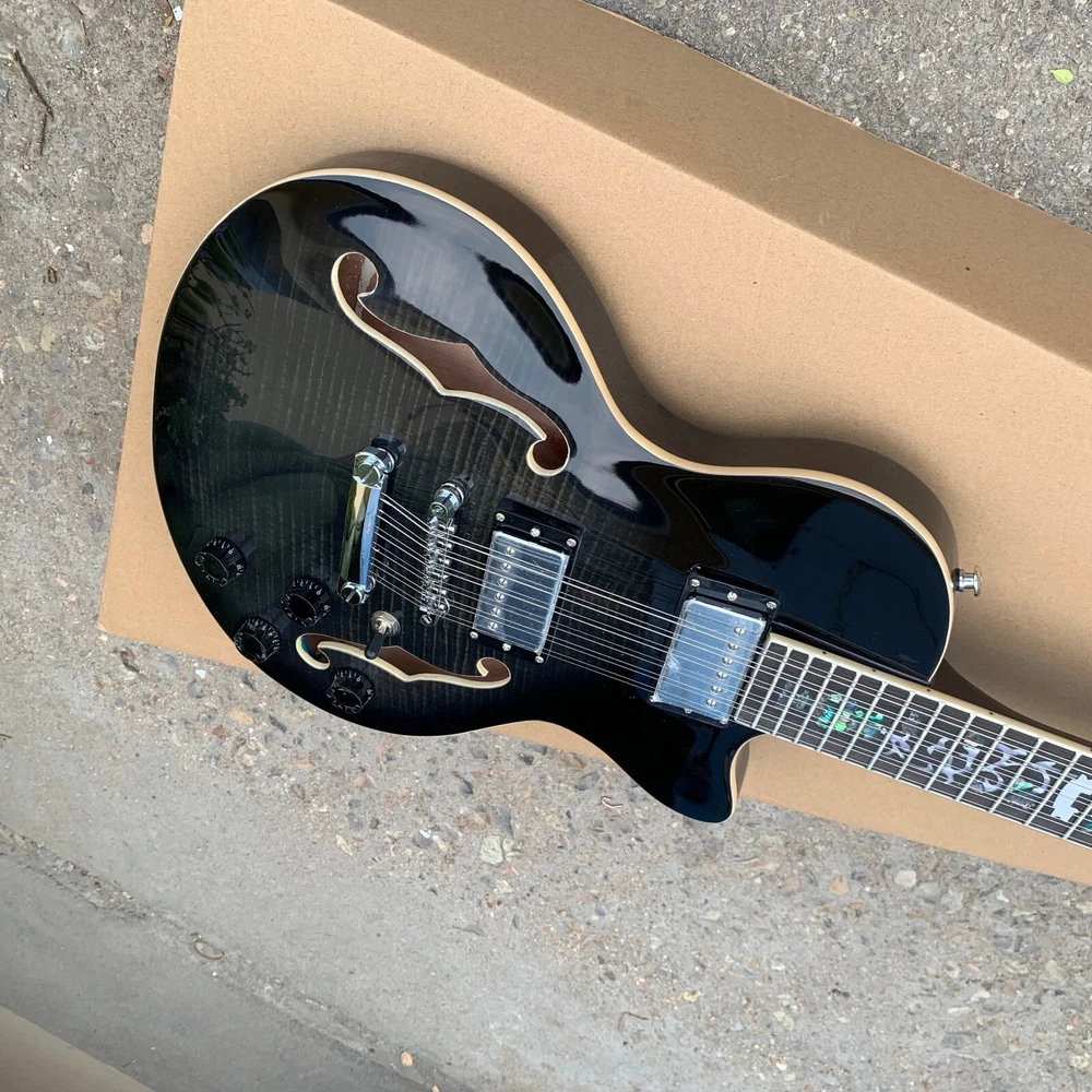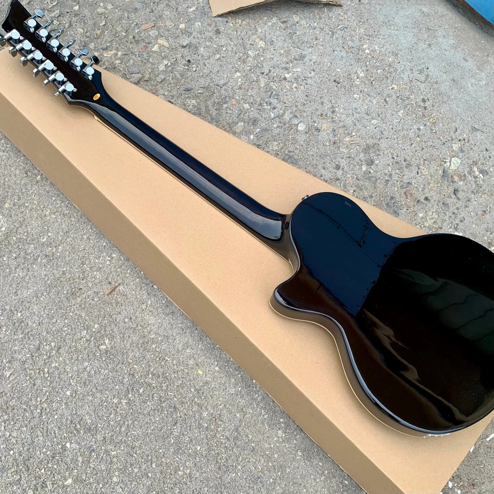 Beautiful 12 string guitar was tested for playing ability plays smooth as silk ,fantastic sounds ,A peace of master craftsmanship; best sounding 12 string guitar I've ever heard ,I bought 2 other 12 strings .just like this one except they have different wood colors,they play perfect ,easy to play the strings on all these ,you can just very press on any string.and it s Avery soft touch to press down ,in which makes it a lot more easier to play fast runs ,licks,,a perfect 12 string guitar design
