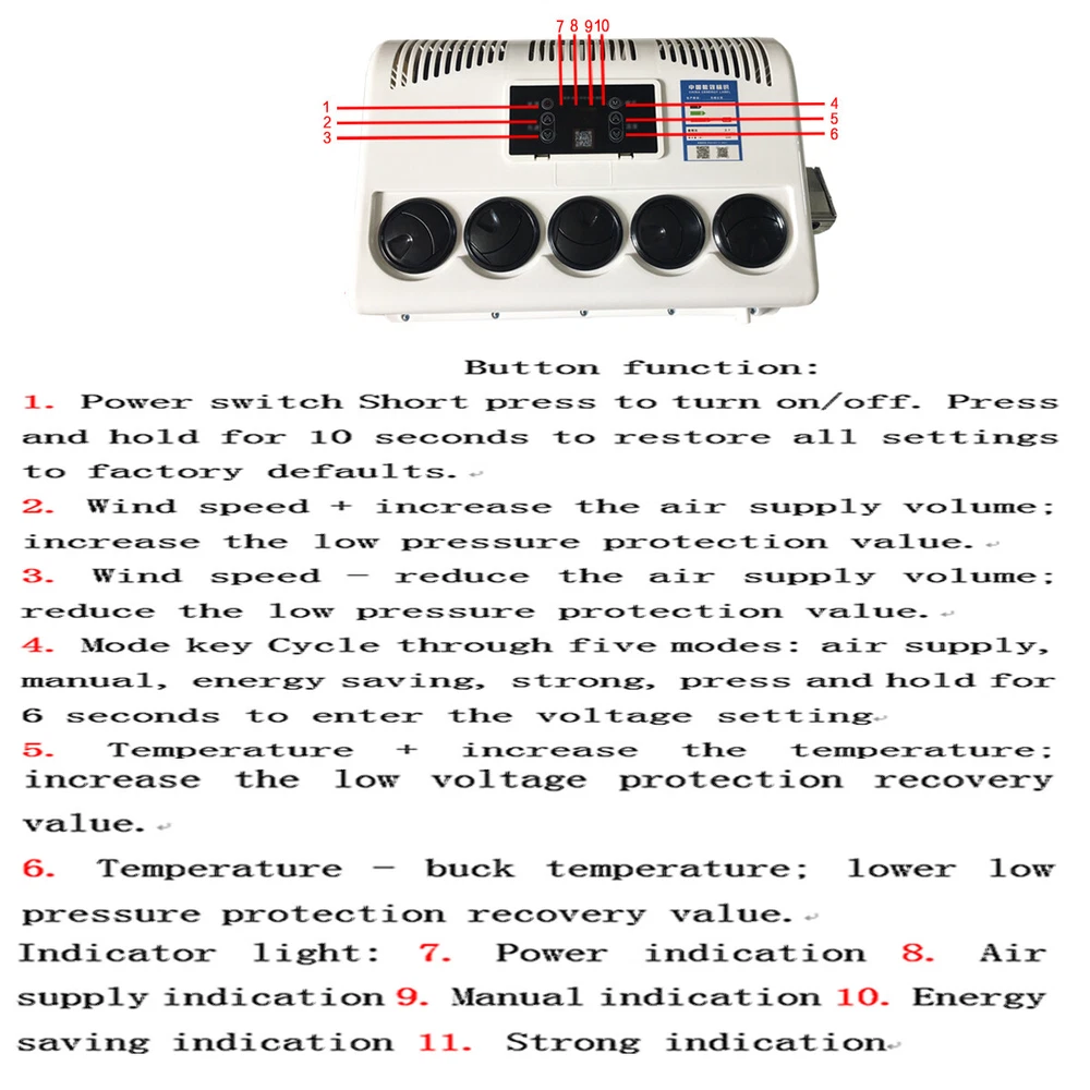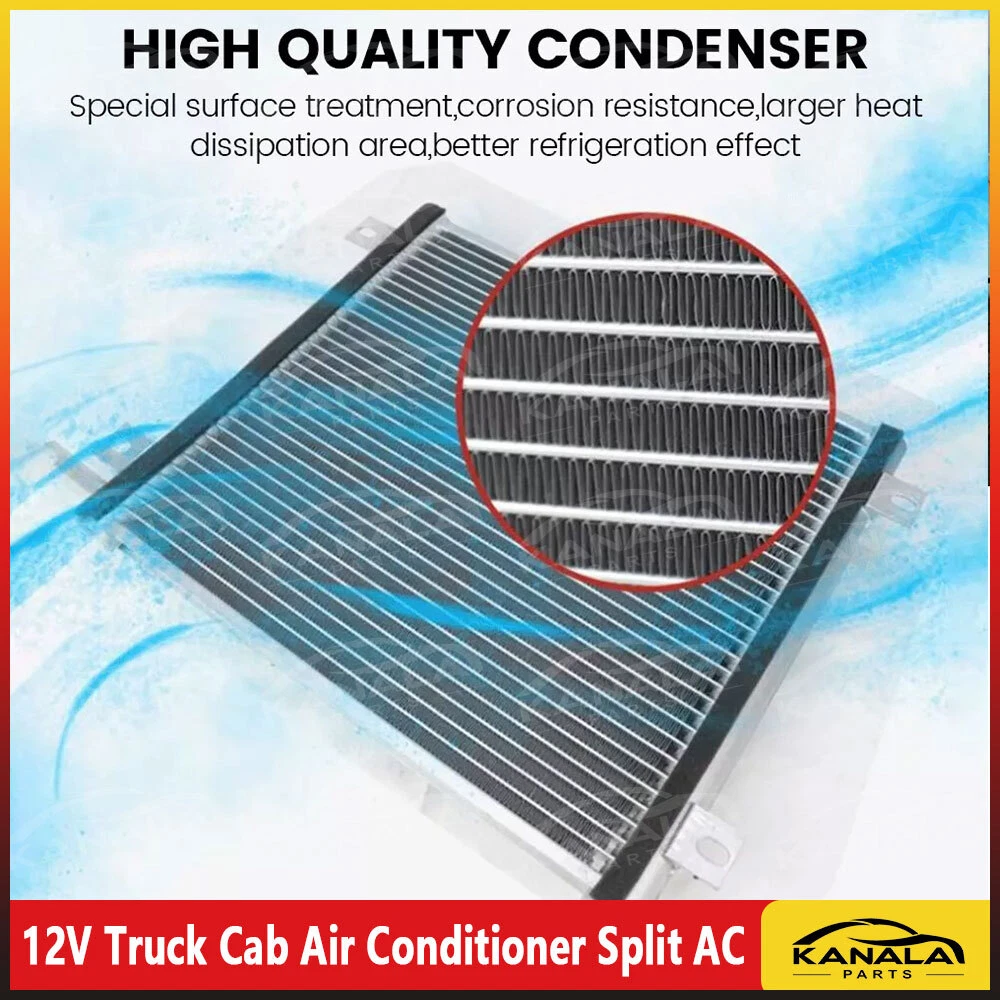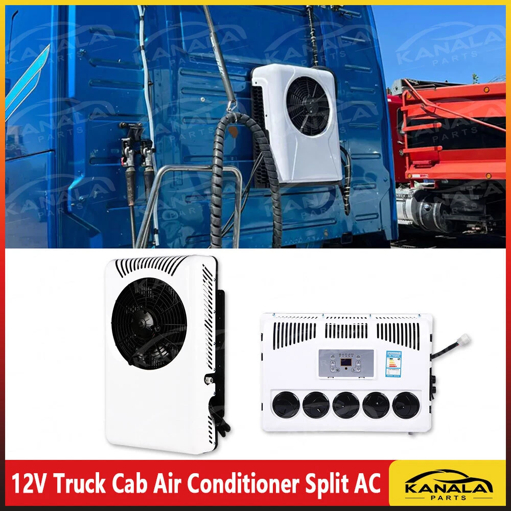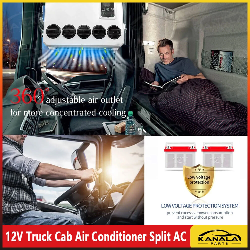 12000 BTU Truck Cab Air Conditioner 12V Split AC Fits Semi Trucks Bus RV Caravan Product Description Current (A): 35-50A Rated power: 350W-850W Cooling capacity: 2600W Refrigerant:R134A 600g (Not include in the package) Since the refrigerant cannot be transported, you need to buy it yourself Oil: 400ML POE 68 Outdoor unit size: 69CM*40CM*18CM Indoor unit size: 45CM*31CM*15CM It is powered by th e battery of the Truck car WHAT IS PARKI NG A I R CON DITIONER ? --The parking air conditioner is a kind of in-car air conditioner. It refers to the equipment that uses the on-board battery DC power supply (12V) to make the air conditioner run continuously when parking and waiting and resting, and to adjust and control the temperature, humidity, flow rate and other parameters of the ambient air in the car, so as to fully meet the comfort cooling needs of the truck driver. --Normally drivers leaving the engine running for hours to use the air conditioner during parking or rest time at night, it is bad for the environment and tons of fuel wasted, it also wears down the engine faster. Parking air conditioner works with truck battery power without engine on which can save energy and fuel and at same time provide safe and comfortable environment for driver. Fuel,Energy And Money Saving. --Digital frequency conversion control, more efficient and more energy saving. Use energy saving mode when you sleep at night, it can run continuously 6 to 8 hours. Use super mode in hottest hours, cooling rapidly and stronger air supply. Key Features Good Cooling Effect: The parking air conditioner is a kind of in- car air conditioner. It uses the on- board battery DC power supply (12V) to make the air conditioner run con tinuously to adjust and control the temperature, humidity, flow rate, and other parameters of the ambient air in the car, to fully meet the comfortab le cooling needs of the truck driver. Saving Energy: The parking air conditioner works with a truck battery wi thout an engine. Meanwhile, it adopts digital frequency conversion and al lows you to use the energy- saving mode when you sleep at night, saving you lots of energy. Long Endurance: It can work continuously for about 6 to 8 hours on a full charge, which can meet your daily needs. Highlights Brand New, With High Quality Direct Replacement Trouble-free Installation Stylish Appearance Strong and Durable Exquisite Workmanship Easy to Clean Stable Performance Long Service Life Remote Control Notes -- We strongly recommended professional installation. Please contact us if you have any questions. -- Please allow the slight difference caused by the shooting light and 1- 3cm error due to manual measurement, and make sure you do not mind b efore ordering. Fits (As a Reference) For car Package Included 1* Air Conditioner Kit 1* Remote Control Other Accessories for Assembly Package Include: 1 Set Air Conditioner(There is an installation video) 📢 Please pay attention to the following points when installing: 1. When installing the air conditioner outdoor unit, keep it away from heat sources. ❌🔥(eg, keep away the engine) 2. When adding a refrigerant, pay attention to the high -voltage meter of the high pressure pipe, not more than 15 kg ❗❗❗ 3. It is recommended to use a big brand refrigerant🥇 4.A vacuum state is required before adding refrigerant 5.12V stable power supply, the positive and negative wires should be connected to the battery