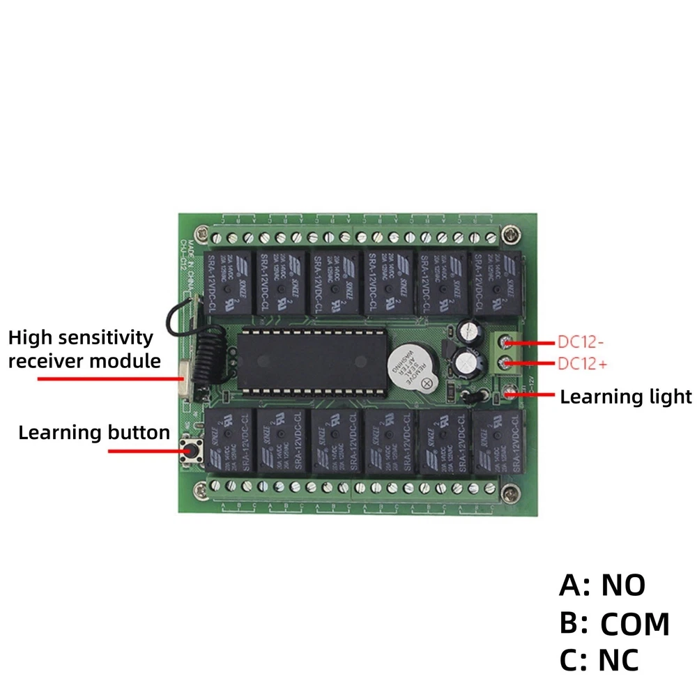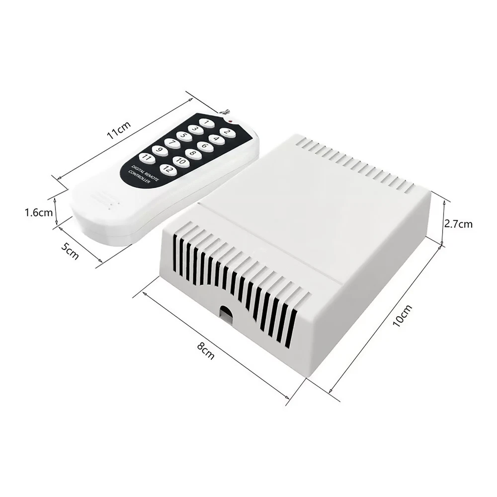 Product Description 12V 12CH RF Wireless Remote Control Switch System Transmitter&Receiver RF 315MHz Features: This Remote Control Switch Adopts A 12v 10A Relay, Which Controls High Power And Makes The Control Performance More Stable Learning Button Design Allows For Multiple Remote Controls And Switches To Be Paired With Any Switch, Using Imported Chips And High-Quality Double-Sided Pcb Circuit Boards, The Product Is More Durable And Compatible With Better Quality. The Wireless Signal Program Learning Function Makes The Product Highly Anti-Interference, And Similar Products Will Not Have Any Interference Or Garbled Characters. Specifications: Radio Frequency: 315mhz Operating Voltage: 12V DC Decode: Learning Code Operating Type: Jogging, Interlock, And Self-Locking Size: 100mm X 80mm X 27mm Remote Control Battery: 1* 23A 12V Battery(Battery Included) Transmitting Distance: 200-500m Matching Methods: Press The Learning Button On The Receiver For About 2 Seconds, Then The Light Will Turn On And Release To Enter The Learning Mode; Press A Key On The Remote Control To Learn According To Your Desired Function. If The Receiver Receives A Signal And The Indicator Light Flashes About 4 Times, It Indicates Successful Learning. Clearing Method: Press And Hold The Learning Button On The Receiver For About 8 Seconds Until The Indicator Light Flashes Twice And Then Goes Out, Indicating Successful Clearing. Working Modes: Jogging, Interlock, And Self-Locking Can Be Switched At Will. Interlock: Press Each Key On The Remote Control With Your Hand To Turn On The Corresponding Relay, And Then Press Another Remote Control Key; The Corresponding Relay Is Connected, The Other Is Disconnected, And Only One Relay Can Be Connected At A Time. Jogging: Press And Hold Each Key On The Remote Control To Activate The Corresponding Relay, Then Release The Remote Control Button; The Corresponding Relay Is Disconnected, And Only One Relay Can Be Connected At A Time. Self Locking: The Same Key Controls One Channel, Press It Once To Turn On, Press It Again To Turn Off, And Two Channels Are Independently Controlled, Package Including: 1* Receiver 1* Transmitter Payment Shipping Returns Contact Us We accept all verified payments from ebay. Orders will be shipped after receiving cleared payment. Payment due within 7 days after auction ends and for buy it now listings. We ship most of our orders within 24 hours, and may up to 48 hours. If you want faster shipping way. Please contact us before making payment. Sometimes due to problems with our transportation company system, your shipping information may be delayed to update. We recommend that you try again after 3-4 days. If you still haven't checked the shipping information, you can contact us by ebay message. Always believe we can figure things out with communication, if it comes to return, the pacakge must be intact and the same as you receive. If you have any questions, please feel free to email our service specialists 24 Hours a Day, 7 Days a Week. We will reply you ASAP. Return/refund is accepted within 30 days after the buyer receives the item. NO exchange will be accepted after 30 days from the date when the item is received. Please contact us first before returning your product!!! If you have any questions, our Customer Service staffs welcome you to email us. We strive to answer all questions and resolve any problems as quickly as possible. You can contact us 7*24, we will reply at the first time, and we will surely solve your problems. Note: 1.We try our best to reply to your emails as soon as possible, however, due to high volume of daily incoming emails and time zone difference, we may not be able to reply your emails immediately. Please allow 1 business days for us to response. If you do not receive any reply from us, please check your email ensuring your mailbox has not reached full size. 2.Due to some ISP SPAM filter settings, you may not be able to receive our replies; if you have problems receiving our emails, you may need to use a different email account to contact us. 3.Please give us the opportunity to resolve any problem. We understand the concerns and frustrations you might have, and will try our best to resolve the issues. Please email us before leaving any negative feedback or open any dispute on PayPal. 4.We care about our valued customers, and will always try to help you. So if you have any problems, please e-mail us immediately. Payment We accept all verified payments from ebay. Orders will be shipped after receiving cleared payment. Payment due within 7 days after auction ends and for buy it now listings. Shipping We ship most of our orders within 24 hours, and may up to 48 hours. If you want faster shipping way. Please contact us before making payment. Sometimes due to problems with our transportation company system, your shipping information may be delayed to update. We recommend that you try again after 3-4 days. If you still haven't checked the shipping information, you can contact us by ebay message. Returns Always believe we can figure things out with communication, if it comes to return, the pacakge must be intact and the same as you receive. If you have any questions, please feel free to email our service specialists 24 Hours a Day, 7 Days a Week. We will reply you ASAP. Return/refund is accepted within 30 days after the buyer receives the item. NO exchange will be accepted after 30 days from the date when the item is received. Please contact us first before returning your product!!! Contact Us If you have any questions, our Customer Service staffs welcome you to email us. We strive to answer all questions and resolve any problems as quickly as possible. You can contact us 7*24, we will reply at the first time, and we will surely solve your problems. Note: 1.We try our best to reply to your emails as soon as possible, however, due to high volume of daily incoming emails and time zone difference, we may not be able to reply your emails immed