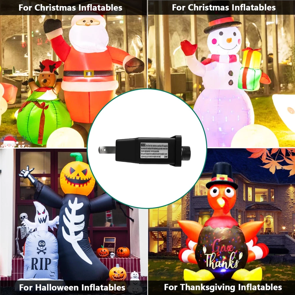 LED Transformer Replacement Class 2 Power Supply for Christmas Inflatable Decorations Plug IP44 Waterproof LED Controller Low Voltage (12V 12W 1A), 1 Pack 【Attention】Only suitable for 12V 12W 1A Inflatable Decorations/LED Lights. Only suitable for the 2-pin connection shown in the photo. No remote control. Warm Tips: If the voltage does not match, the LED lights will continue to flash, or the timer and mode function will not work. 【8 Modes and Memory Function】Press the button on the transformer can set 8 lighting modes, and it can save your last mode setting without having to reset the mode every time. 【Timer function】Press for 3 seconds until the green light is on, then the timer is activated. The fairy lights will light up for 6 hours every day and turn off for 18 hours. Press and hold the button again for 3 seconds until the green light goes out and the timer function can be switched off. 【IP44 Waterproof/Fireproof】The LED adapter is IP44 waterproof (not fully waterproof) and can be used for indoor and outdoor use. Please take appropriate waterproof measures when it rains. Made of high-strength ABS material, effectively prevents the cable from heating up. 【Compatibility】This adapter fits for 12V low voltage led device with current under 1A, such as christmas inflatable decorations, inflatable equipment, etc..