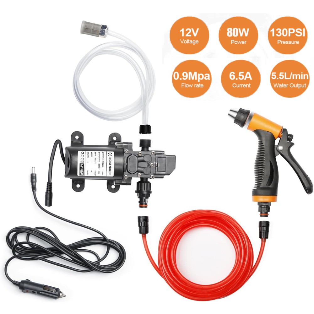 Feature: 【High Pressure Washer】 【Portable and Compact】 【4 Adjustable Spray Modes】 【Safety 12V Water Pump】 【Daily Multipurpose】 Specification: Voltage: DC 12V Power: 80W Power Source:Car Cigarette Lighter Max Pressure:130PSI (1.1MPA) Flow: 5.5L/min PVC Pipe (Water in)length: 1.2 meters Pressure pipe(Water Out) length: 6 meters Car cigarette charger line length: 3 meters Package Include: PVC Pipe with Connector (Water Out) x 1 High Presure Water Gun x 1 Pipe with Water In Filter x 1 Water Pump x 1 Car Cigarette Charger line x 1 Note: the pump is not waterproof, please put it away from water. The car washer should be placed in the dry place Instruction: ... 12V 130PSI Washdown Wash Pump Kit Electric DIY Car Washer Cleaner Sprayer Tool Feature: 【High Pressure Washer】Car high pressure washer 12V water pump car washer, using high-quality micro self-priming pump and high-efficiency DC motor, the pump is a low-power and energy-saving product. 80W 130PSI, High Pressure Wash Kit for Car, Garden, Home, Cleaning, Pet Shower. 【Portable and Compact】The water pipe can be easily connected with the water gun and water pump, and the water gun is comfortable and convenient to hold. Lightweight and compact small design makes it easier to use and clean quickly indoors or outdoors or anywhere. 【4 Adjustable Spray Modes】A total of 4 spray modes of straight line, dispersion and water spray are available for you to choose. Just rotate the spray gun nozzle to meet your different applications. There is always a way that works for you. 【Safety 12V Water Pump】The car washer Kit with DV 12V safety voltage is safe for adults, children and pets. Comes with over-current protection function car cigarette lighter adapter, built-in fuse protection, which can prolong the life. 【Daily Multipurpose】Are you looking for a multifunctional cleaning Power Washer suitable for household projects? This pressure washer is best for you! In addition to washing the car, the portable pressure washer is also suitable for watering flowers, washing the bathroom, cleaning windows, cleaning floors, cleaning air conditioners, and cleaning windows. Specification: Voltage: DC 12V Power: 80W Power Source:Car Cigarette Lighter Max Pressure:130PSI (1.1MPA) Flow: 5.5L/min PVC Pipe (Water in)length: 1.2 meters Pressure pipe(Water Out) length: 6 meters Car cigarette charger line length: 3 meters Package Include: PVC Pipe with Connector (Water Out) x 1 High Presure Water Gun x 1 Pipe with Water In Filter x 1 Water Pump x 1 Car Cigarette Charger line x 1 Instruction: 1. The first gun or brush is connected with a water pipe, the water inlet pipe into the bucket, the cigarette lighter plug into the car cigarette lighter socket, wire pull out close the door, if there is a switch on the power supply check Water Leakage place, everything is ready, according to the center on both sides from the top to the bottom of the law, start cleaning from the roof 2. Wash the dirty dirt on the car and the surface of car body with water gun. Wash it with brush after washing 3. After washing, the washing liquid sprayed on the surface of the paint, while the spraying with semi wet towel to wipe the body suede washed part 4. Such as drying the body, and then polished with cotton towel, you can be bright as new Matters needing attention In winter, in order to prevent and storage water ice, take out the water pipe and then spray for a period of time, emptying the water until It is forbidden to wash the machine into the water (to avoid damaging the electrical components) Note: the pump is not waterproof, please put it away from water. The car washer should be placed in the dry place Payment Shipping Return Contact us About us Payment 1.Paypal, Credit Card, G Pay etc, many payment way is accepted. 2.Please be sure your shipping address is correct before make a payment. Shipping 1.We are shipping from multiple warehouses (Houston, Texas/ Corona, California) , please note before placing an order 2.We will ship out the item within 1-3 business days after comfirming the payment, appreciate your patience. 3.If the items are broken on the way( we will check the orders clearly before we sent them ),please contact us in 3 days you received it. We will send you a new one or refund your payment. Return 1.We stand behind every buyer.Items can be returned for exchange or refund within 30 days. 2.Please contact us when you have any confusion of our item, we will solve the trouble for you as soon as possible. Contact us 1.This is professional Seller.We will reply your message within 24 hours. 2.Please contact us whenever you have any question about the item. We will deal with it as soon as possible. 3. If you are unhappy with the item or our service,please Contact Us before leave feedback,just give me a chance,thank you! About us 1. Unless specified otherwise, all our products are IN STOCK and are shipped from Local warehouse - Not Overseas! 2. We provide a 30 day Satisfaction Guarantee or your money back (provided items are in the same new and resaleable condition.) 3. We have a PayPal Verified Business Account, please buy with Confidence! 4. Every item will be tesrted before send.We know our products well and if we don't have the answers we will do our best to find them for you! 5. Our friendly team look forward to serving you! Your satisfaction is our No.1 Priority We will do our best to satisfacy you.