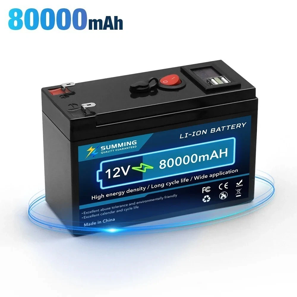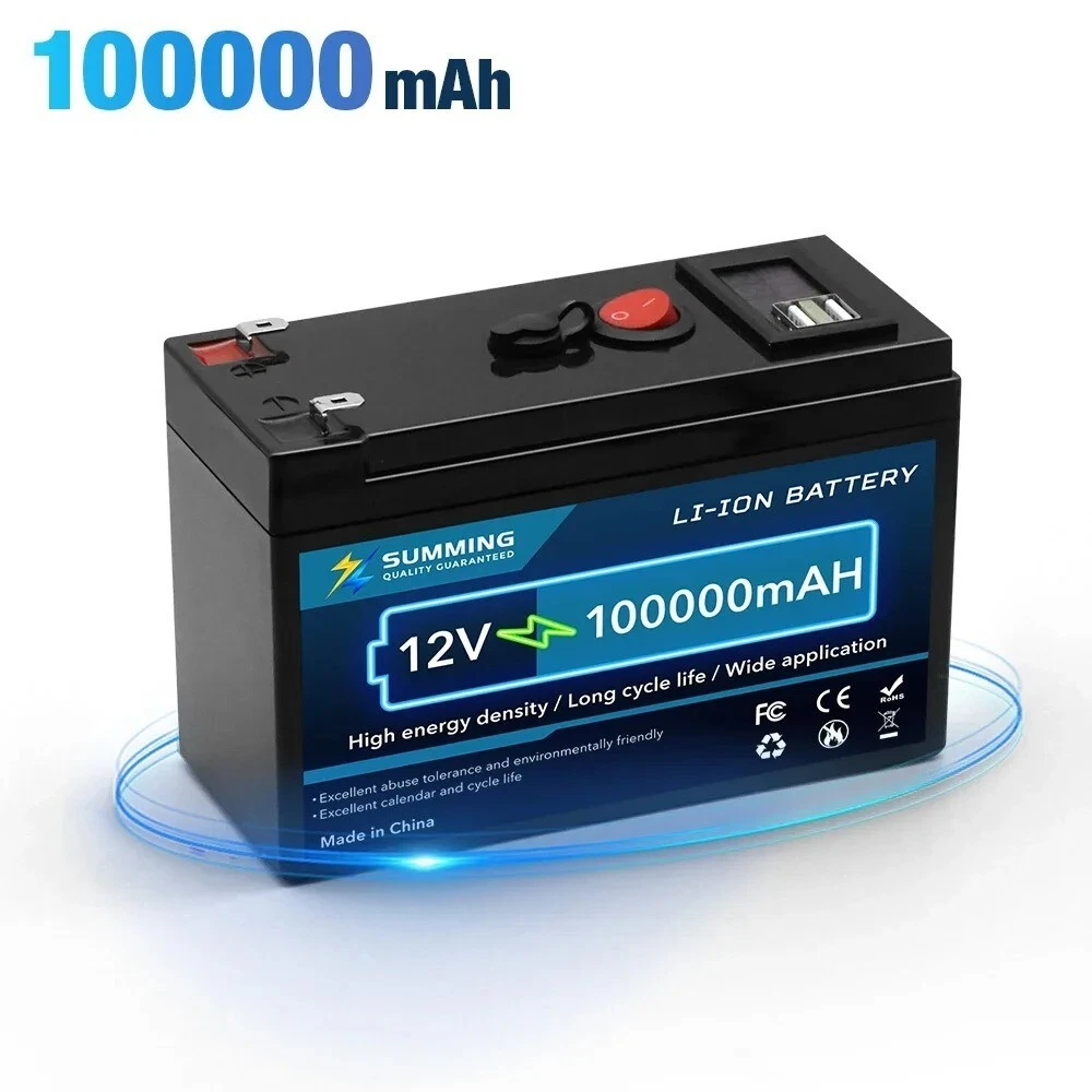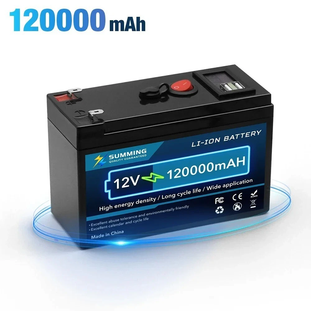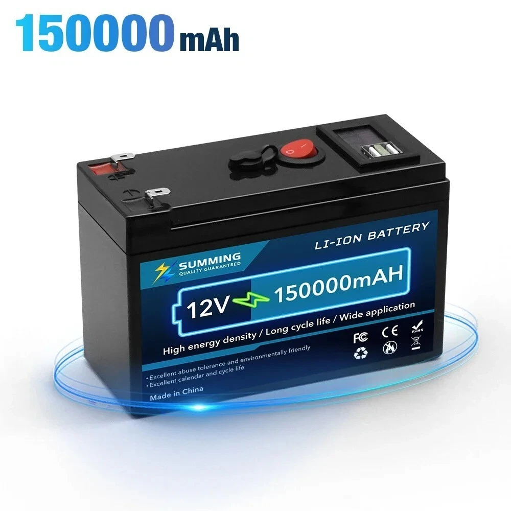 Specifications Hign-concerned Chemical None Nominal Capacity 60/80/100/120/150Ah Weight 1.15kg Voltage 12V Size 5.9in*6.4in*9.5in Model Number 18650 battery Type Li-Ion Brand Name Xin@MengYuan Origin Mainland China Certification CE,FCC,RoHS,KC 12V 150000mAh Lithium 18650 Deep Cycle Battery Built-in Smart BMS for RV for Solar for Fish Finder for Marine for Outdoor Camping for Off-Grid Applications with USB Port 12V 150000mAh Lithium 18650 Deep Cycle Battery for Solar Fish Finder Marine Outdoor Camping Off-Grid Applications with USB Port Battery type: Lithium ion battery Nominal Capacity: 60Ah/80Ah/100Ah/120Ah/150Ah Rated voltage: 12V Battery Model: 18650 Cell Voltage: 3.7V Battery weight: 1.15kg(150Ah) Battery size: 5.9inx9.5inx6.4in / 15cmx9.5cmx6.4cm Input charging voltage: 12.6V Input charging current: standard 3A, fast 5A Charging temperature: 0 ~ 45 ℃ Discharge temperature: - 20 ~ 60 ℃ Storage temperature: - 20 ~ 45 ℃ Internal BMS protection circuit: overload, overdischarge, overcurrent, short circuit protection. Maximum voltage: 12.6V The charge status indicator is red. It will turn off automatically after full charge and turn green. About this product 18650 lithium battery: 12V 150Ah lithium battery is manufactured with A+ grade 18650 cells, which has higher energy density, more stable performance and greater power, with excellent quality. Batteries are ideal for solar homes, RVs, campers, trolling motors, and off-grid applications. 10-year service life: 12.8V 150Ah battery can provide 4000~15000 cycles. Light weight - easy to move: The 12V 150Ah battery weighs only 1.15kg, the battery is 50% lighter than batteries of the same capacity. High efficiency: 12V 150Ah battery run time has been greatly improved. This product is your best choice for outdoor camping power supply and easy indoor installation. There is no memory effect, no matter what state the battery is in, it can be used as soon as it is charged.