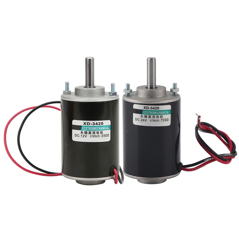Feature: 1. Ball bearing, small friction, strong oil seal, high bearing capacity. 2. It drives super smooth, almost no noise, safe to use. 3. With high speed 3500/7000rpm for your choice and large torsion. 4. The stator windings of the motor are copper wire, low heat, low loss, long life,and with CW/CCW control 5. Need for external direct current governor, it can achieve speed adjustment function Specification: Descriptions: This DC electric motor drives super smooth, almost no noise, safe to use.With high speed 3500/7000rpm for your choice and large torsion. Widely used in cotton candy machine, small cutting bench, grinding machine and other mechanical equipment. Features: It drives super smooth, almost no noise, safe to use. With high speed 3500/7000rpm for your choice and large torsion. The stator windings of the motor are copper wire, low heat, low loss, long life, and it can realize CW/CCW by switch control (switch not included) . Need for external direct current governor, it can achieve speed adjustment function. Widely used in cotton candy machine, small cutting bench, grinding machine and other mechanical equipment. Ball bearing, small friction, strong oil seal, high bearing capacity Specifications: Product type: brush DC motor Model: XD-3420 Rated power: 30W Rated voltage: 24V Rated speed: 3500RPM(12V), 7000 RPM(24V) (Optional) Current: 0.5 A Output Shaft Length: Approx. 26mm/1.02inch Torsion:1kgf.cm(12V), 2kgf.cm(24v) Weight:460g Package Included: 1 x DC Electric Motor Note: Please note that the new type and old type of this product will be sent randomly, and make sure you will not mind before ordering.