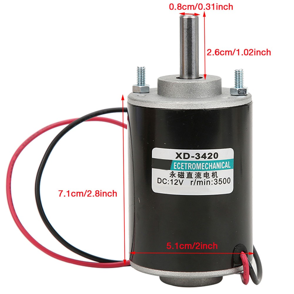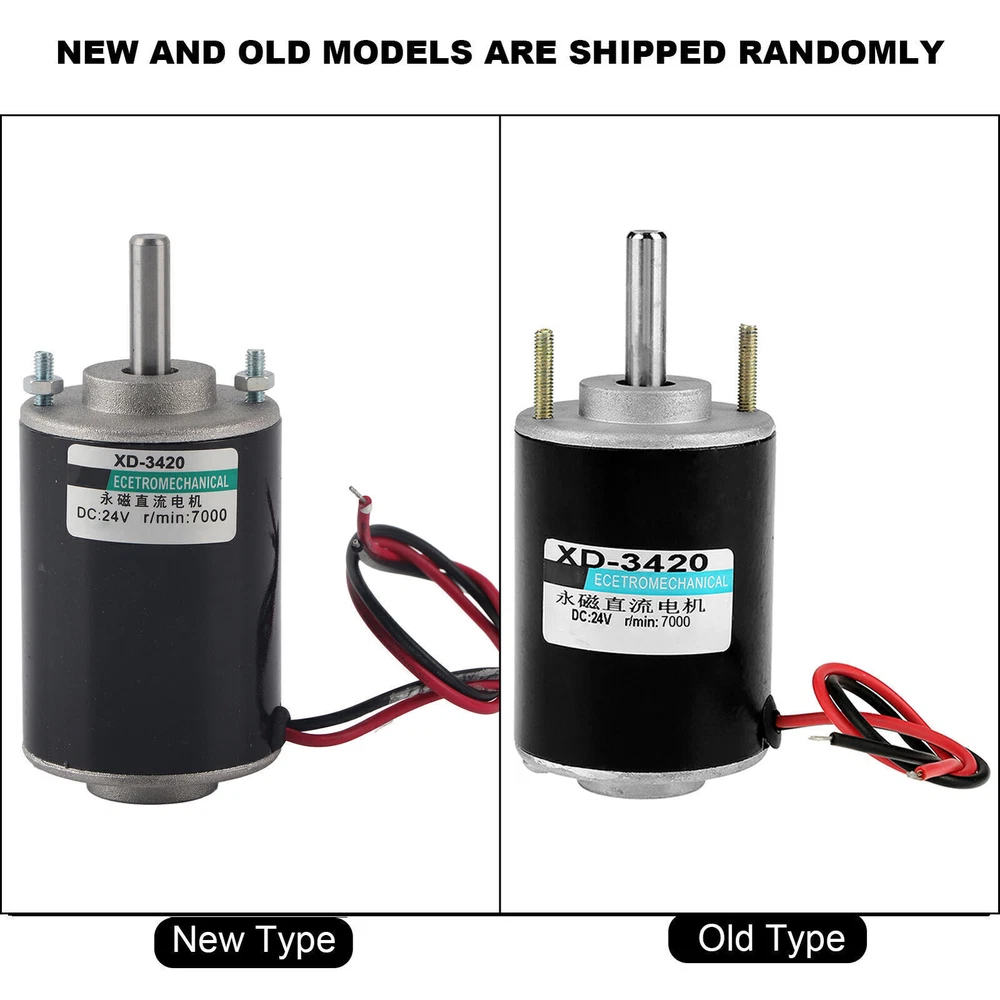 Feature: 1. Ball bearing, small friction, strong oil seal, high bearing capacity. 2. It drives super smooth, almost no noise, safe to use. 3. With high speed 3500/7000rpm for your choice and large torsion. 4. The stator windings of the motor are copper wire, low heat, low loss, long life,and with CW/CCW control 5. Need for external direct current governor, it can achieve speed adjustment function Specification: Descriptions: This DC electric motor drives super smooth, almost no noise, safe to use.With high speed 3500/7000rpm for your choice and large torsion. Widely used in cotton candy machine, small cutting bench, grinding machine and other mechanical equipment. Features: It drives super smooth, almost no noise, safe to use. With high speed 3500/7000rpm for your choice and large torsion. The stator windings of the motor are copper wire, low heat, low loss, long life, and it can realize CW/CCW by switch control (switch not included) . Need for external direct current governor, it can achieve speed adjustment function. Widely used in cotton candy machine, small cutting bench, grinding machine and other mechanical equipment. Ball bearing, small friction, strong oil seal, high bearing capacity Specifications: Product type: brush DC motor Model: XD-3420 Rated power: 30W Rated voltage: 24V Rated speed: 3500RPM(12V), 7000 RPM(24V) (Optional) Current: 0.5 A Output Shaft Length: Approx. 26mm/1.02inch Torsion:1kgf.cm(12V), 2kgf.cm(24v) Weight:460g Package Included: 1 x DC Electric Motor Note: Please note that the new type and old type of this product will be sent randomly, and make sure you will not mind before ordering.
