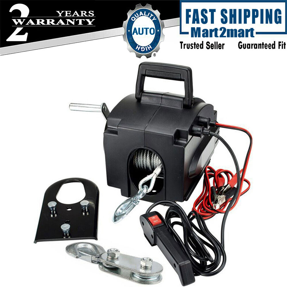 *WELCOME TO rongbigdealtrade - Your Trusted Destination!* Product description: Practical portable electric winch for pulling boats, trucks and other heavy objects. Powerful 2000-pound mobile, 12V DC power supply, easy to use without extension cable or small gas engine. Portable, integrated handle and quick mounting plate, heavy duty hook and rope thimble, easy to upgrade to a full-featured ATV handlebar with minimal additional accessories. Includes a hand-held rubber remote control for better and safer performance at any distance from the winch Applicable to small vessels, cars and other vehicles. Features: Rolling force: 6000 pounds Floating pull: 5000 pounds Rated pull: 2000 pounds (906 kg) Maximum size of the boat: 18 inches (6 meters) Maximum weight of the boat: 5000 pounds (2265 kg) Motor power: 300W, 12V Gear reduction ratio: 465:1 No-load speed: 2 m / min Wire rope: Φ4.8mmX9.2M Cable: 30 feet Hook size: 105 x 60 mm Power cord: 3 meters Switch line: 3 meters Remote control switch: 9'9L Mounting plate 8-3 / 4 inches x 4-15 / 16 inches x 3/16 inches Installation size: 227X113X31.7MM Dimensions: 203X218X170MM Weight: 16kg The package includes: 1X power cord with rugged plug and circuit breaker. 1X remote control switch with waterproof plug for safe operation. 1X 30' aircraft box with hooks. 1X mounting bracket for the tow bar. 1X emergency crank and adjustable clutch. Note: This product is electric rope take-up, manual rope release Payment Delivery details Terms of sales About us Contact us Payment We accept ebay payment 。 Fees such as import duties, taxes are not included in the item price or shipping costs. These charges are the buyer's responsibility. Delivery details Shipping: 2-9 working days to: USA Terms of sales We maintain high standards of excellence and strive for hundred percent customer satisfaction. Feedback is very important to us. We hope that you contact us immediately before you give neutral or negative feedback, so that we can address your concerns. It is impossible to address issues if we do not know about them! About us Your satis faction is our ultimate goal. We work hard to earn your trust and future business. Our certified technicians have tested each item before shipping. The unit comes with 1 year limited warranty on all manufacturing defects. a) If you receive a defective item, you may return it or ask for a discount. Please contact us within 14 days after you receive the package. b) What you returned must be intact and in its original packaging as re? u. Customer is responsible for shipping costs of the returned item. c) We will cover the cost of shipping back t with the shipping rate indicated in the registration page. We will send you a new unit or refund the full payment you paid. Thank you. Contact us Business Hour Business Hour: Monday To Friday: 8:30 AM to 5:00 PM (Beijing China time) Due to time zones, our reply to your questions may not be immediately. But within above working time, we will reply your email within 24 hours. If it's non-workdays, please kindly be patient and wait till Monday. Please contact us with ebay message. Please feel free to contact us if you have any questions. Monday To Friday: 8:30 AM to 5:00 PM (Beijing China time) Due to time zones, our reply to your questions may not be immediately. But within above working time, we will reply your email within 24 hours. If it's non-workdays, please kindly be patient and wait till Monday. Please contact us with ebay message. Please feel free to contact us if you have any questions.