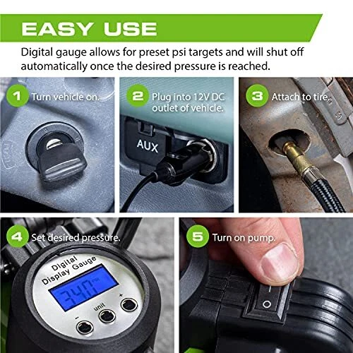 This portable air compressor is a lifesaver! Super easy to use—just plug it into your car’s 12V socket, and it inflates tires, sports balls, and more in minutes. Compact, lightweight, and surprisingly powerful for its size. The auto-shutoff feature prevents over-inflation, and the built-in LED light is handy for nighttime emergencies. Perfect for road trips, camping, or just keeping in the trunk for peace of mind. No more struggling with manual pumps—this thing is a game-changer!