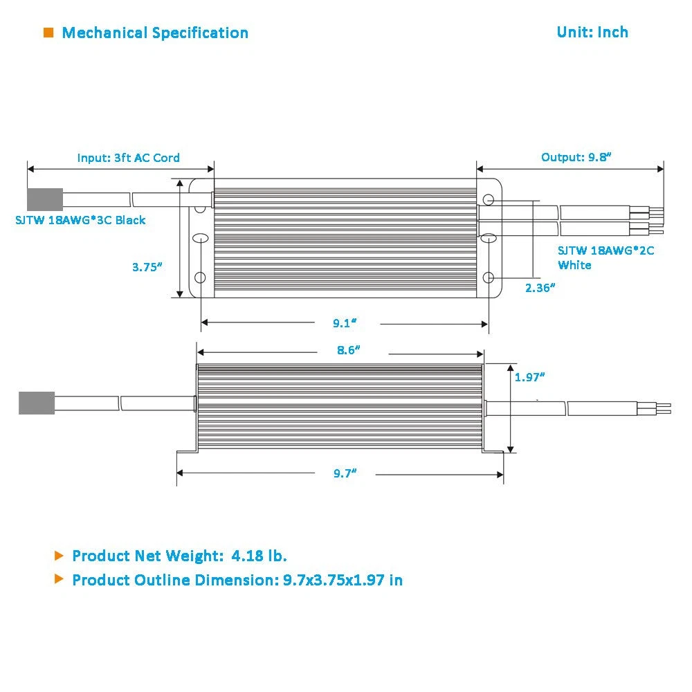 Real 200 Watt LED Driver, just use 100% loading, Non-Dimmable LED Driver 120V to 12V DC for LED Landscape strip Light or others 12V product Recognized for North American, marked with Backward RU, this means the power supply was passed safety testing and recorded on database IP67 Waterproof, suitable for wet or dry location, long lifetime Included wiring connector, easy for wiring, no need soldering