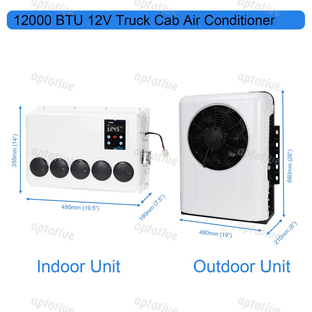 Specification: Type: Split AC Air Conditioner Cooling capacity: 12000 BTU Certification: ISO/CE Controller Type: Remote Control Volt: 12V Current: 60-80A Rated Power: 960W Refrigerant: R134A (600g) Cooling capacity: 1000W-3000W (3400-10238BTU) Oil: 90ml-120ml POE68 Noise: 70db Function: Air Cooling Material: Aluminum,Metal,Steel Mounting Style: Screw-On Outdoor Unit Size:L:660 * W:490 * H:210 (Mm) / L:26 X W:19 X H:8 - Inches Indoor Unit Size:L:495 * W:355 * H:190 (Mm) / L:19.5 X W:14 X H:7.5 - Inches Control Method: Intelligent Drive Drive Mode: Independent OE/OEM Part Number: Semi Truck air conditioner 12V, 12V air conditioner, 12V Truck air conditioner Features: High Quality, Durable, Easy Installation, Low Noise, Energy Saving, Environmental Protection, Fast Cooling, 100% Leak Tested Fitment: Universal Item Included: 1Set Electric Air Conditioner Features: 【12V air conditioner parameters】: 12v air conditioner Rated voltage: 12V, rated current: 60-80A, power: 960W, cooling capacity: 1000W-3000W, inner unit size: L:495 * W:355 * H:190 (Mm) / L:19.5 X W:14 X H:7.5 - Inches, outer unit size: L:660 * W:490 * H:210 (Mm) / L:26 X W:19 X H:8 - Inches, please You carefully compare whether the parameters meet your needs. 【Energy saving】: This RV air conditioner has a large layout freedom, and the inner unit is small in size. It can be installed according to your needs. The air conditioner can be turned on after parking, does not consume gasoline, and has low noise. When you are parking or waiting, use 480 AH car battery, can be used for 6-8 hours, does not require fuel to drive at all, saves a lot of fuel costs, and can still enjoy a comfortable, quiet and cool environment in hot summer. 【Wide range of applications】: Our 12V air conditioner is suitable for all kinds of models, RVs, heavy trucks, light trucks, engineering vehicles, forklifts, cranes, oil to electricity, etc. All vehicles are suitable for installing our 12V air conditioner, in the hot summer Provide you with an environment that is both environmentally friendly and economical and cool and comfortable. 【High quality material】: This truck air conditioner has a beautiful appearance and is made of high-quality steel plate, which is strong and durable, and this DC electric air conditioner adopts a high-efficiency electric scroll compressor, which is anti-vibration, high energy efficiency, low noise, and can keep cool even when the engine is off. 【Quality Assurance】: Our Parking air conditioner are of high quality. Helps drivers get enough rest and improves road safety, We include installation instructions, If you have any questions during installation and use, you can contact us at any time, and we will provide solutions and solutions that satisfy you. Package Include: 1 Set Air Conditioner Note: The Actual Color Of The Product May Differ Slightly From The Color Displayed On Our Website. This May Be Due To Factors Such As The Angle Of Product Photography, Lighting, And Display Settings. If you have any problem towards the order you received,please feel free to contct us,we promise will serve you and give you a satisfying solution.