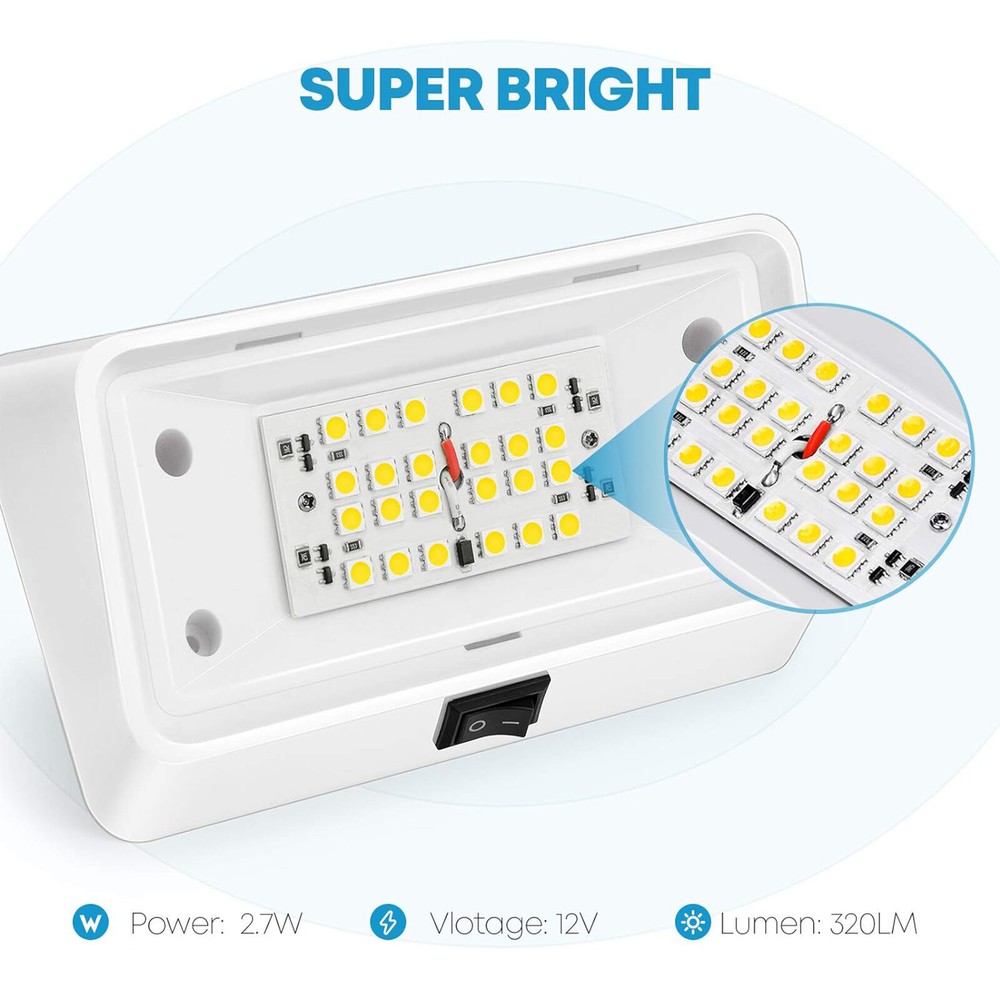 Features: 【Wide Operating voltage】 DC 11-18V, LED technology designed to withstand fluctuat working voltage and not still make it energy-saving and durable of more than 50000 lighting hours 【Easy Installation】2 wires connection: black is the ground and red positive; Interior and Exterior Compatible with 12 Volts DC recreational vehicles, great for RV camper motorhome travel trailer etc 【Waterproof IP65 & Durable Material】compared to old-typed gasket sealed design, the LED panel of this new type is completed sealed with resin and water will NOT get into the light or disrupt lighting even when you take off the lens. With all-weather molded plastic housing and durable lenses, it can prevents corrosion and last longer 【Handy ON OFF Switch & Two Lenses Options】 Equipped with convenient ON/Off switch so that you don't have to open the door, and go inside to turn on the outside light. Includes 2 snap-in replaceable lenses, clear & amber. You can choose whatever suits your situation best or the light color (white or amber) as you wish 【Specifications】 Total 24pcs High power 2835 LEDs output of 360 Lumens, 3.6W, DC 11-18V, Energy efficiency and lower power consumption Electric polarity: Black is ground and red is positive Product Description: -- Waterproof: IP65; Size: 6"(L) x 3.5"(W) -- LED type: SMD 2835, 24pcs; Light color: White 4000-4500K -- Power: 3.6Watts; Lumen: 360LM; Operating voltage: DC 11-18V -- Compact oval design for years of use and Clear snap-in replaceable lens Package includes: 1x RV LED Porch Light with switch 2 x wire nuts 4 x screws