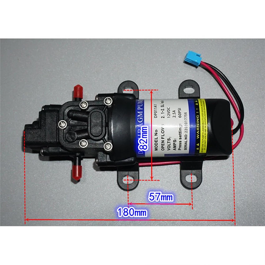 You may also like 1/5 Dust Cover Resist Dirt Chassis Guard For Traxxas X-MAXX XMAXX RC Truck Car 20.72 USD 23.55 USD 3.98 USD 12% off Oven Piezo Spark Ignition With Cable Push Button Igniter For Gas Oven Grill BBQ 11.09 USD 12.6 USD Free shipping 12% off Front/Rear Metal Shock Towers Fit For TKR5428 TKR5429 MT410 RC Car Accessories 19.14 USD 21.75 USD 8.5 USD 12% off Washing Fluid Detergent Box Liquid Box For Bosch/Siemens Drum Washing Machine 16.15 USD 18.35 USD 8.55 USD 12% off For Samsung Galaxy S24 S24+ S24 Ultra Case Slim Leather Protective Cover Skin 13.68 USD 15.55 USD 7.55 USD 12% off Bluetooth Earphones Charging Case Box with Cable For Jabra Elite8/Elite 8 Active 18.61 USD 21.15 USD Free shipping 12% off Portable Storage Box Waterproof Protective Case For DJI Mini 3 3 Pro/Mini 4 Pro 113.16 USD 128.59 USD Free shipping 12% off Sport Silicone TPU Wristwatch Band Bracelet Fit For Mi Band 8 Smart Watch Strap 5.85 USD 6.65 USD Free shipping 12% off Magnetic Charger Dock Station Fast Charging For Fitbit Versa 4/Sense2 Smartwatch 8.58 USD 9.75 USD Free shipping 12% off Sweeper Robot Side Brush Replacement Parts For MI M30 Pro Robot Vacuum Cleaner 5.94 USD 6.75 USD Free shipping 12% off 42mm Stainless Steel Sapphire Glass Watch Case + Bezel For NH35/NH36 Movement 28.29 USD 32.15 USD Free shipping 12% off Aluminum Steering Bracket Steering Accessories For 1/10 Traxxas E-maxx T-maxx RC 17.77 USD 20.19 USD 8.5 USD 12% off Folding Increase Height Landing Gear Extension Leg For DJI Air 3 Drone Accessory 11.43 USD 12.99 USD Free shipping 12% off Rear Collision Avoidance Group RC Cars Accessory For WLtoys RC Car 124008/124010 7.56 USD 8.59 USD Free shipping 12% off Door Lock Switch Fit For LG WD-80185N WD-80180N WD-80187N Drum Washing Machine 10.43 USD 11.85 USD Free shipping 12% off Stainless Steel Watch Strap Three-pearl Band For Redmi Watch 4/Xiaomi Band 8 Pro 11.7 USD 13.29 USD 1.99 USD 12% off Refrigerator Cooling Fan Accessories For Midea NMB 09225SE-12K-FB DC12V 0.09A 27.18 USD 30.89 USD Free shipping 12% off Replacement Mop Cloths For Lubluelu SL60D SG60 SL61 Sweeping Robot Accessories 11.37 USD 12.92 USD Free shipping 12% off Product Description 12V Self-priming Diaphragm Pump Electric Suction Pump w/ Overvoltage Protection Feature s: l Self-priming function, nominal pressure 60PS (0.41Mpa), pump head with overpressure power failure protection switch, the top screw adjustable stop pressure l Pump head material for the reinforced fiber composite plastic, double diaphragm high flow rate desert pump, internal motor is the front ball bearing 775 motor, built-in cooling air blades l Pump in and out of the interface diameter 6.3mm, can be universal 6mm hole quick connector l Pump nominal voltage DC 12V, 12V under test water pump pumping no-load current 0.65A, without load maximum flow rate of about 2.5L / per minute, the pump head with a pressure switch, running line blocking the outlet pump will automatically stop, let go and will continue to work Specification: l Material: Engineering Plastic l Impeller Material: Rubber l Inlet Caliber: 6.3mm l Maximum Working Pressure: 0.5Mpa l Rated Flow Rate : 2.5L/min l Size: 180x82x57mm l Quantity: 1 PCS P ackag e: l 1 x Self-priming Diaphragm Pump About Us Payment Shipping Returns Contact Us Customer Services We are a professional worldwide wholesale company, with our own factory located in China. We supply many products including Consumer Electronics, Home & Garden, Health & Beauty, Apple accessories, Computers accessories, Car accessories, Clothing accessories, Sports & Outdoor Accessories. Our principle: offer high quality product to worldwide at reasonable prices. Customers 100% satisfaction is our top priority. We accept Credit Card, Debit Card and eCheck payments through PayPal. Payment should be done within 7 days after the end of the Auction. Otherwise Unpaid Item Dispute will be filed with eBay. eCheck payments take 3 to 7 business days to clear through PayPal. International Buyers Please Note: a) Import duties, taxes and charges are not included in the item price or shipping charges. These charges are the buyer's responsibility. b) Please check with your country's customs office to determine what these additional costs will be prior to bidding/buying. We ship items to your PayPal confirmed address only. Please make sure your address in PayPal is matched with your shipping address before you pay. We are unable to take any responsibility for wrong address, any custom delay or tax. Transit time is highly depended and provided by Postal Service. All items will be dispatched within 2 business day after receipt of payment. Please notice that orders placed on weekends and public holidays will be dispatched on the next working day. Delivery time is as following It may take longer to other countries or remote areas. If you have not received your shipment within 30 days from payment, please contact us. We will track the shipment and get back to you as soon as possible with a reply. Our goal is 100% customer satisfaction. We back our products with a 60-DAY Return GUARANTEE. Customers should inspect item(s) and notify us within 60 days of any problems. If you have a problem with your item, please contact us before leaving feedback. All items being returned must be issued an RMA number BEFORE they are returned. 6 months Warranty from the date of purchase covering manufacturing defects. This warranty excludes any damage caused by the user. Return shipping is to be paid by the Buyer. We are a professional worldwide wholesale company, with our own factory located in China. We supply many products including Consumer Electronics, Home & Garden, Health & Beauty, Apple accessories, Computers accessories, Car accessories, Clothing accessories, Sports & Outdoor Accessories. Our principle: offer high quality product to worldwide at reasonable prices. Customers 100% satisfaction is our top priority. 100% Customer satisfaction is our top priority. Please give us a