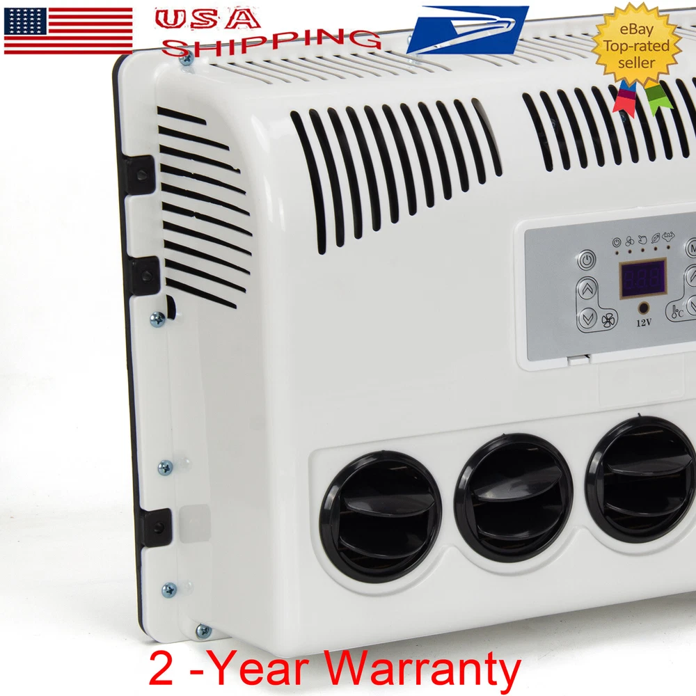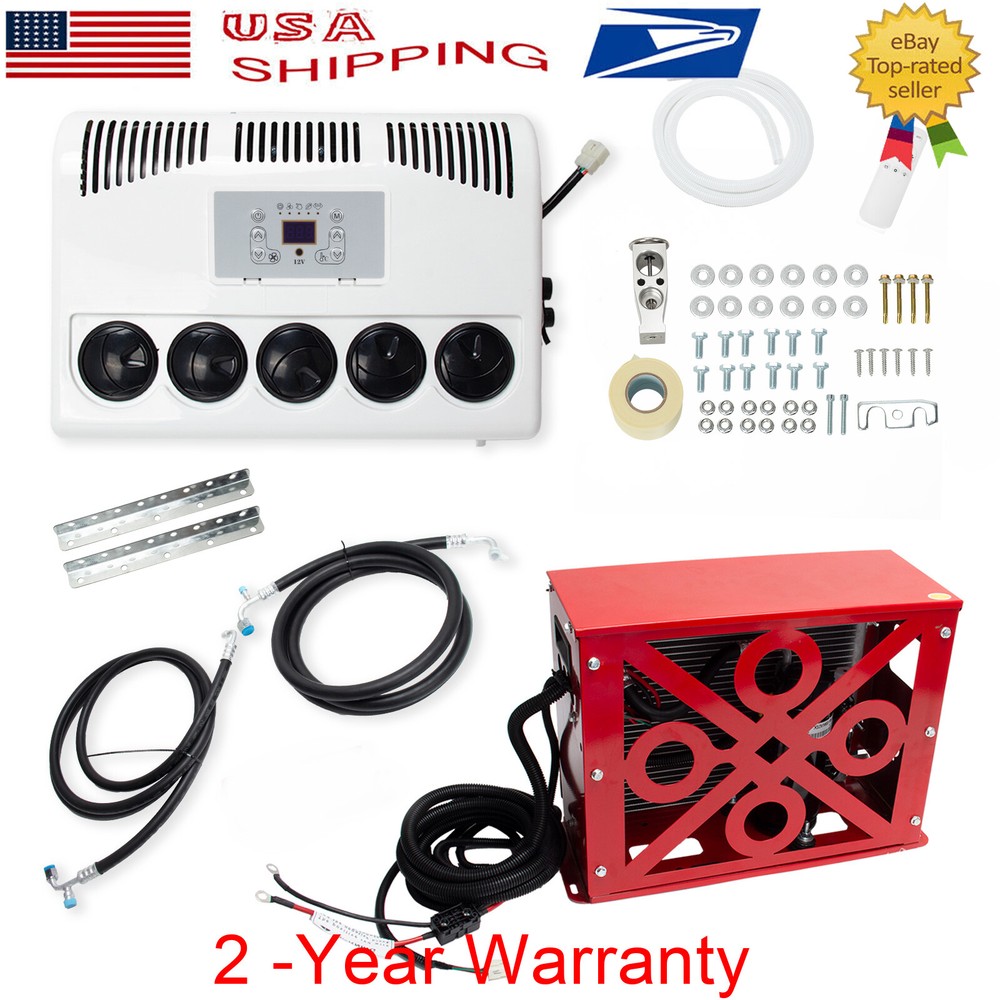 DC 12V Electric Air Conditioner Split AC Kit For Semi Trucks Bus RV Caravan Vans Red Outdoor unit can be under mounted horizonlly FLAT - This electric air conditioner is operated by a battery (generator). You can still use the air conditioner even when the engine is off. Low noise, energy saving and environmental protection is your best choice. Save thousands of dollars in fuel bills each year. Energy saving, economical, environmental protection, no pollution - Air conditioning parameters: Voltage: 12V. Startup current needs 75A. Power: 850W. Cooling capacity: 11000BTU. Add R134a/600g. The outdoor unit can be installed vertically behind the front of the car, or can be installed horizontally on the roof. - The parking air conditioner runs when the engine is off to cool the cabin, which will protect your engine from idling. Instead of consuming fuel, it can be powered by a battery or generator. 12V DC compressors are safer and quieter than high voltage compressors that run with inverters. Inverter air conditioners will monitor battery conditions and operate accordingly, reducing energy consumption. - DC Power: The DC electric air conditioner uses a high-efficiency electric scroll compressor and is powered by the vehicle battery. It keeps your cab cool even when the engine is off. - Suitable for trucks, RVs, vans, excavators, passenger cars, agricultural vehicles, engineering vehicles, ships, etc. - To give drivers plenty of rest and increase safety on the road, our powerful air conditioning system ensures pleasant temperature and humidity and creates an ideal climate for electric parking cooler systems for trucks, buses, vans, motorhomes. High-quality components set high-quality standards for parking coolers and ensure a long service life with minimal maintenance. Electric parking cooler reduces engine idle time, saving fuel. Low pressure cutoff ensures engine start. ATTENTION: 600 g R134A is required to be CHARGED into the air conditioner machine ,if you think 600 g is not enough and want to make the machine make more cooler air,you may charge more R134A ,and the max is 750 g. SIZE OF OUTDOOR UNIT:L:520 * W:420 * H:210 (mm) / L:20.5 X W:16.5 X H:8.25 - inches,48 lb SIZE OF INDDOR UNIT:L:430 * W:320 * H:190 (mm) / L:16.9 X W:12.5 X H:7.5 - inches, 12 lb Features: 1. Thick aluminum condenser, anti-corrosion aluminum, good ventilation and heat dissipation, fast flow rate and fast cooling 2. Stainless steel shell, corrosion-resistant, no deformation 3. Save fuel and electricity 4. Remote one-button control 5. Intelligent frequency conversion 6. Super large air volume, silent air, 360 degree air supply, three gear options 7. Large air outlet 8. High-quality screw fittings, fine workmanship 9. Automatic transmission, rapid cooling, long standby time 10. Automatically adjust the temperature according to room temperature Specification: Powered by the battery of the Truck car. 1. Color: red 2. Rated power: 300-850w 3. Rated current: 40-70A 4. Undervoltage protection: 11.4 5. Protection level: IP * 4 6. Freezing medium: R134a 7. Voltage: DC 12V 8. Air volume: 500m³ / h 9. Cooling capacity: 11000 BTU 10. Undervoltage response: 10.6-11.4v 11. Control method: remote control 12. refrigerant-capacity: 600g-750g ( R134A ) 13.battery cables:7 awg (if the cables are too short for you,you can buy a 100A anderson connector and extra two 7awg cables to make it longer enough) 14. Applicable models: heavy trucks, light trucks, construction vehicles, excavators, ships, touring vehicles, refrigerated vehicles, etc. 15.suggest battery:12v/150a or better Package Includes: 1 Set Air Conditioner