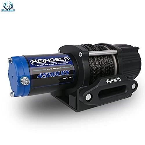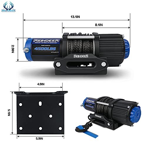 12V Electric Winch Kit 4500 lb Load Capacity with Synthetic Rope Waterproof IP67 Wireless Remote for 4x4 Side by Side ATV UTV Rescue Recovery 12V Electric Winch Kit 4500 lb Load Capacity with Synthetic Rope Waterproof IP67 Wireless Remote for 4x4 Side by Side ATV UTV Rescue Recovery Dimensions: 13.58"×6.1"×3.93" with a mounting bolt pattern of 4.8" x 3", suitable for ATV, UTV, car, boat, trucks, jeeps, and trailers. Constructed from high-tech polyethylene with heat-treated 12-strand synthetic rope, over 10 times stronger than conventional ropes. Features a durable satin-black cast-aluminum housing with sealed engine, offering waterproof, corrosion-resistant, and reliable performance. Equipped with a 198:1 reduction ratio and planetary gear system for enhanced traction and powerful pulling capacity. Includes complete, color-coded wiring, detailed instructions, and 2 wireless remotes for operation within a 50-foot radius. Offers lifetime technical support and a one-year limited exchange service for customer satisfaction.