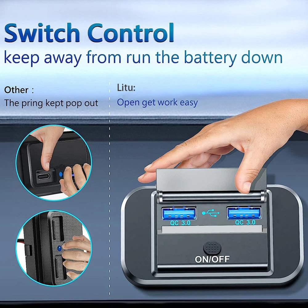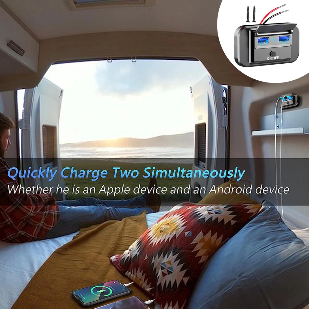 12V-24V Dual USB QC3.0 Car Boat RV Fast Charger Socket Power Outlet Bullet Points: Revolutionary USB Charging: Providing seamless and effortless charging for your RV, this outlet utilizes intelligent identification and 66W super fast charging, supporting QC3.0 and PD3.0 for the precise 3A/2A/1.5A current or 5V/9V/12V voltage your devices need. Advanced Charging Performance: Our RV USB Outlet allows for simultaneous charging of 2 devices with high-speed QC3.0 and PD3.0 ports, providing a cutting-edge power solution that boosts charging efficiency to new heights. Unmatched Security Features: Enjoy a worry-free charging experience with our RV USB Outlet equipped with 6 safety protection layers, preventing overload, current fluctuations, short-circuiting, overheating, overcharging, and voltage surges while providing stable and safe power supply. Effortless Installation: Create an opening with a hole opener. Seamlessly integrate this RV USB Outlet into your vehicle and then secure with the threaded fixing ring. Connect the black wire to the negative pole, attach the red wire to the positive pole. Widely Applied Convenience: Seamlessly power up devices with this RV USB Outlet, ideal for a range of vehicles from SUVs to boats, ensuring connectivity for all your journeys. Description: Experience super fast charging with our RV USB Outlet 12V Wall Mount. Equipped with QC3.0 and PD3.0 charging ports and over-current protection, this product is perfect for motorcycles. Specification: Product name: USB fast charging QC+PD+QC fast charging without opening holes Input: 12-24V Output: QC3.0+PD3.0+PD3.0 (QC3.0: 5V/3A, 9V/3A, 12V/2.5A) (PD3.0: 5V/3A, 9V/3A, 12V/3A with PPS) Reverse connection protection: This product has reverse connection protection Product wire length: with 0.13m wire Input voltage: independent fast charging, 66W Packing List: 1 x RV USB Outlet Notes: 1. Due to the different monitor and light effects, the actual color of the item might be slightly different from the color which is showed in the pictures. 2. Please forgive a slight measuring deviation due to manual measurement. 1.You can make a Credit payment via Paypal.Paypal will let you use MasterCard,Visa to pay. 2.Payment should be completed within 5 days after auction closed, or unpaid dispute will be filed for an closing auction.An unpaid case will be filled after 4 days. ● We strive for 100% customer satisfaction ! ● Positive Feedback is very important to us. ● We hope that you contact us immediately BEFORE you give us neutral or negative feedback, so that we can satisfactorily address your concerns. ● We promise to offer the lowest price and high quality produce. Dear buyers : ● Welcome to my store ! ● Your satisfaction is our top goal,we appreciate your patronizing. ● If you have any questions, please contact us before leave negative or neutral feedback, we will try our best to solve the issue to your satisfaction, thanks ! ● If you are satisfied with our service, please rate the details of the transaction (Detailed Seller Ratings) on eBay. ● Please always talk to us via ebay Message. ● We appreciate your business and look forward to growing our e-Bay sales with satisfied customers.
