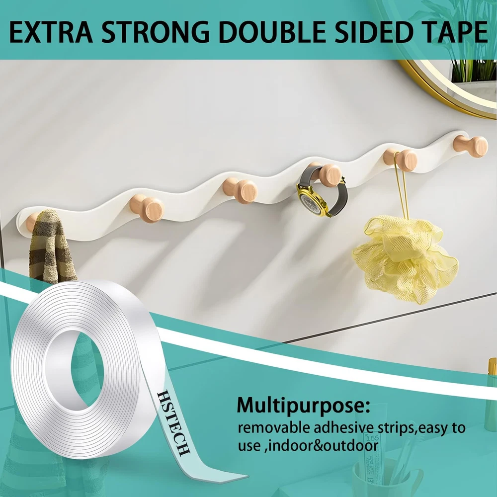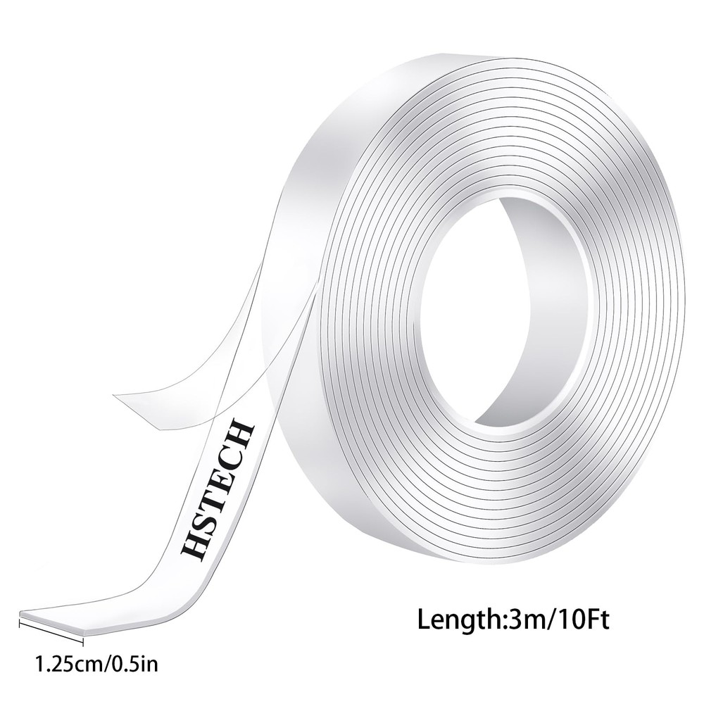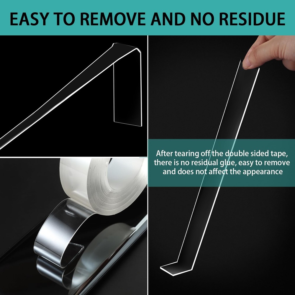 Double Sided TapeHeavy Duty can help you hang up and stick items such as poster, photo, carphone holders, carpet, wall stickers, hooks, sticky pads, phone cases, cables,etc. The removable double sided tape can also be used in the office, kitchen,bedroom, bathroom and so on. Double sidedadhesive tape removable else works for Car/Cellphone/Industry/LCDpanel/Glass/Frame/Lens/Parts assemble and Electronic/Home appliance/Decorationstrip etc. Package included:Packed of 1 rolls acrylic double sided tape Material: Acrylicgel material Size: 1/2" Length: 10ft Thickness: 1mm Color: Transparent Elastic: Super good High/Lowtemperature resistance: -4 ℉~ 160 ℉ Double Sided TapeHow to use: 1: Peel off theprotective film before use. 2:Keep surfaces cleanand dry before using double sided mounting tape. 3: Clean thesurface you want to stick. 4: Cut it into theappropriate size and paste it. 5: Press the tapefor five seconds. IMPORTANT TIPS: 1. Please don't usethe double tape on painted walls, because the paint may be torn off whenremoving the tape or hanging heavy objects. 2. Please don't useit on powder/wet/dirty/uneven walls, and rough surfaces. These surfaces mayreduce the viscosity of the double-sided tape. 3. Please pressheavily on the items for 60 seconds after pasting the double sided tape toachieve the best adhesion between the item and the tape. 4. If the weight ofthe objects you want to hang is heavier, please use double-sided tape to covermore contact surfaces. [Double Sided Tape]: 1roll, Size:1/2", Specifications Length: 10ft, Thickness: 1mm, Color: Transparent. Material: Acrylic gel material. The double side tape can be cut at any size, so please cover enough areas to ensure stick firmly. [Heavy Duty Removable Mounting Tape]: Wash, Reuse, Enjoy No Residues! This is no ordinary tape you use once and then throw it away. If the tape gets messy, you can wash it with warm water and then let it dry naturally so that it regains its stickiness. Don’t use any detergents as you do the cleaning thing. Once you remove the tape, it won’t leave any residues, which means no extra cleaning or surface damage. Do Not Use on Painted Walls. [Multipurpose Tape]: Multy Use & Custom Size - With our tape, you can hang up and stick items such as pictures, car phone holders, carpet, wall stickers, hooks, sticky pads, phone cases, cables, etc. The removable double sided tape can also be used in the office, kitchen, bedroom, bathroom and so on. Bring great convenience to your life! Our tape works perfectly as a picture hanging tape removable and sticky tape for walls removable. [Double Sided Tape Heavy Duty Stick Securely]: Our two sided tape is made of the unique nano gel material, which makes a long-lasting hold you can rely on. ATTENTION: Do not use on painted walls, because the paint may be torn off when removing the tape or hanging heavy objects. You can hang photo frames, mirrors, wall art, posters, led strips, solar lights, holiday decorations, and other home decorations where you need without the nails and hammer. [Easy to Use and Remove]: Double Sided Tape with an ultra strong grip is a no-mess alternative to drilling holes and hammering nails. Adhesive, washable & reusable. Sturdy, durable & easy to remove. Doesn't damage surfaces or leave residue when removed. It can be stretched, bent, cut to any size & length. Recyclable, & eco-friendly. Your new two sided tape - definitely a must have for any home.