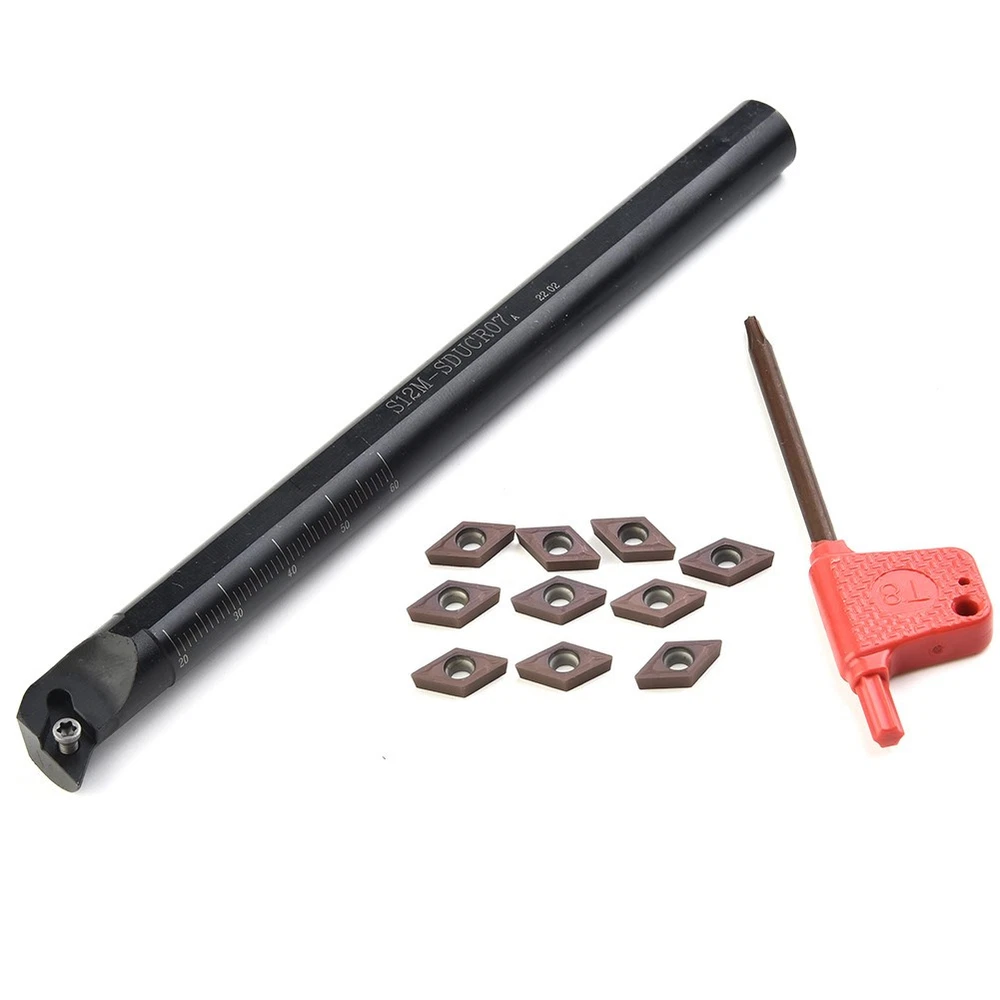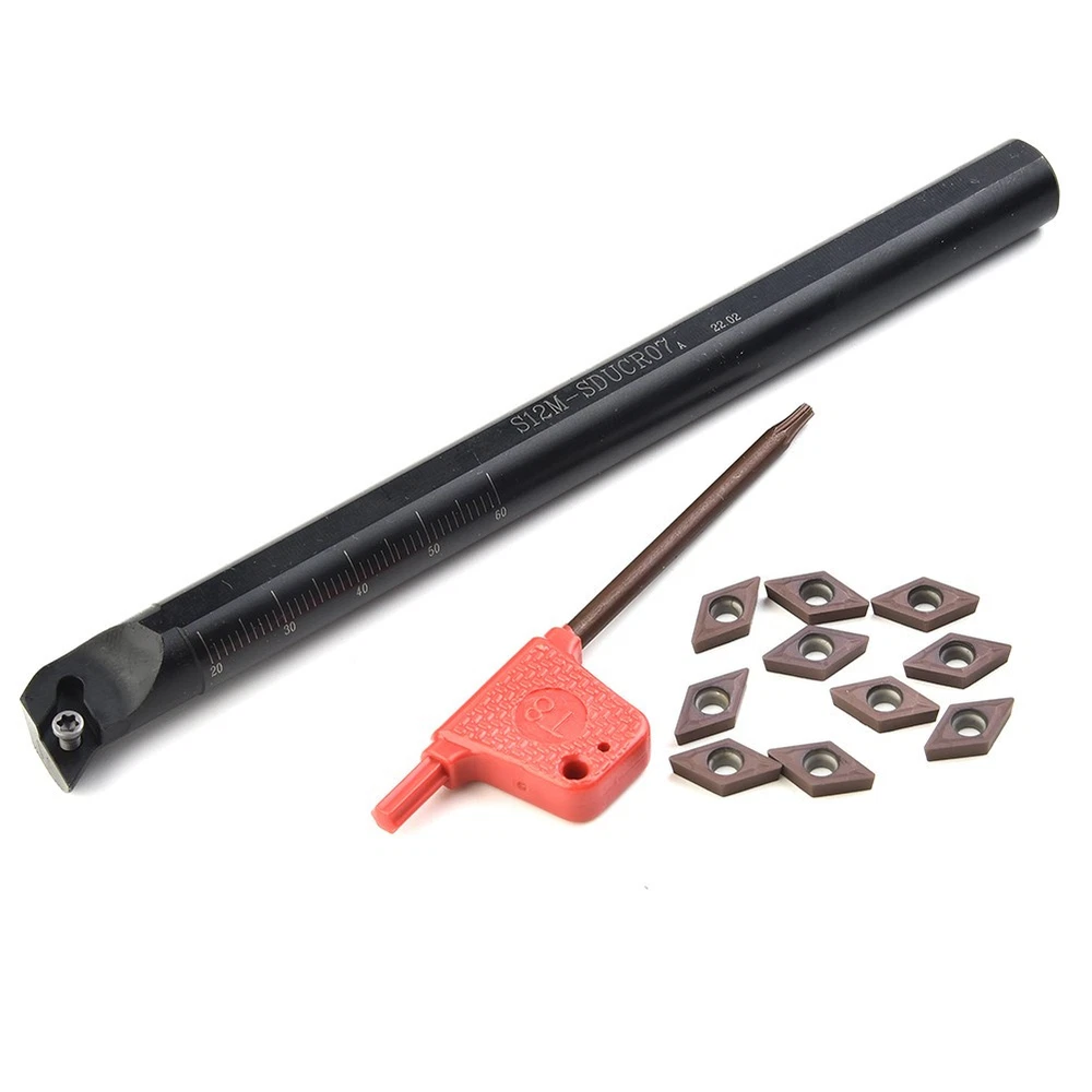 12mm Lathe Boring Bar Turning Tool Holders DCMT0702 Carbide Insert Replacement DESCRIPTION Features: User clamping and convenient to replace, only a wrench to complete the replacement of the cutter blade and pad. High strength and hardness, in use. High grip strength and resistance. Clear speed advantage in cutting off a large margin and processing. Suitable for semi-finishing, finishing. High quality and brand new. Specification: Model: S12M-SDUCR07 Material: Steel Blade Shank: 12mm (Approx) Shank Length: 150 mm (Approx) Wrench: T8 Inserts: DCMT0702 (10pcs) Package Contents: 1 * S12M-SDUCR07 Turning Tool Holder 1 * T8 Wrench 10 * DCMT0702 Blade Notes: 1,The real color of the item may be slightly different from the pictures shown on website caused by many factors such as brightness of your monitor and light brightness. 2,Please allow slight manual measurement deviation for the data. POLICES Shipping Payment WARRANTY We only ship to confirmed ebay Order addresses. Please comfirm that your Order address is in line with your shipping address. Please kindly note that the c ombined shipping is not provided because the shipping fee is calculated by weight. Also, the each additional item means exactly the the same color and size. It takes about 7 -15 working days to US; about 10-30 working days to other countries. Transit time may be a little delayed because of the bad weather and customs inspection . If you do not receive your item within 30 working days since payment finished, please contact us immediately for further assistance. Payment must be completed within 5 days. If you have any problems about payment, please contact us via ebay message. We strive for 100% customer satisfaction! Positive Feedback is very important to us. If you have any questions, p lease feel free to contact us via "Ask seller a question" . We will reply your email within 24 working hours.