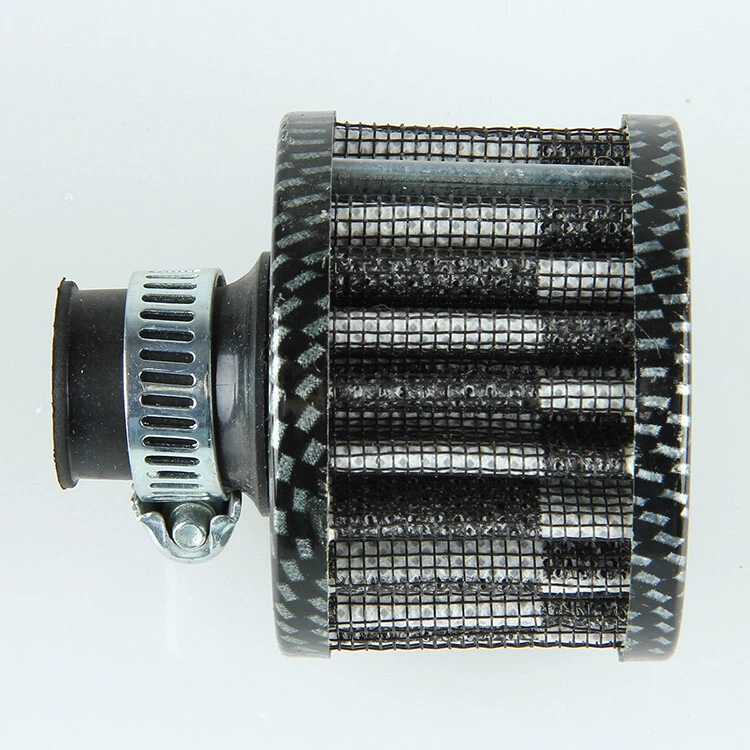 Feature: Directly bolt-on with no modification require. Fine mesh increases and strengthen the amount of air flow. It clamps directly to any intake vacuum applications,Tightened by the Stainless Steel Clamp provided Great quality mini filter in carbon fiber look for customizing your ride and replace your filter element now. Specification: Brand new Material: Aluminum Color: Imitation Carbon Fiber Look Style Inlet Diameter: 12mm Size:6.0 x 5.0 cm/2.36 x 1.97 inch(H x D) Fitment: Universal fitment for any 0.47" 12mm intake system. Package Included: 1 x Air Filter