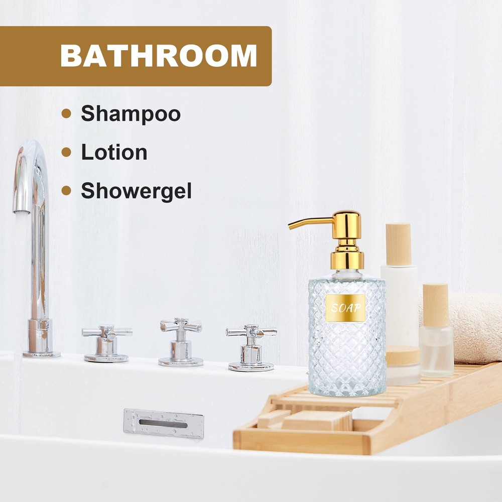 MOCLIF 12OZ Diamond Glass Dispenser with Gold 304 Stainless Steel Bathroom Dispenser for Kitchen,Hand Soap,Dish Soap,Shower,Lotion and Other Liquids(Clear) ⭐APPEARANCE:Designer Design New Bottle Diamond Graphics, High-end Gorgeous Design, Metal Design with Gold Soap Pump Looks Like a Work of Art, Whether Farmhouse, Modern, Bohemian Style or other Styles, This Glass Soap Dispenser Set Can Help You Get Organized and Reduce Waste ⭐Material: The Bottle Body is Made of Thick, Environment-Friendly, Lead-Free Tempered Glass, the Soap Pump is Upgraded with 304 + 316 Stainless Steel (Rust-Proof Upgrade) , the Gold-Plating Process is Not Only Beautiful, More Durable, Lasting Bright, BPA-Free, Mercury-Free, Lead-Free, Reusable, Refillable, Environmentally Friendly, Recyclable ⭐DESIGN: The Dispenser is 7 Inches Tall, 3 Inches Wide, and Has a Reasonable Capacity of 12 OZ. The Bottom of The Bottle is Non-Slip. The Soap Pump Delivers 2 cc of Liquid at a Time By Pressing, Use It For Yourself or as a Gift is a Good Choice ⭐USES: Whether In The Bathroom, Kitchen or Office, or Any Countertop is a Good Choice, Can Be Used For Liquid Soap, Hand Sanitizer, Detergent, Lotion, Essential Oils, Shampoo, Shower Gel, Mouthwash, Massage Oil and So On. ⭐After-Sales: We Offer Not Only High-Quality Products, But Also a 100% Refund For One Year-Please Contact us Immediately If The Soap Dispenser Does Not Work as Expected. A Refund or Exchange Is Available. SHIPPING Domestic Buyers - We have confidence in our products, but if you are not fully satisfied please contact us within 30 days of purchase and you will get full refund. - We ship within 3 business days of payment, usually sooner - We offer FREE shipping on all orders! - We only ship to the lower 48 states, no APO/FPO addresses or PO Boxes allowed International buyers – please note: Import duties, taxes, and charges aren't included in the item price or postage cost. These charges are the buyer's responsibility. - Please check with your country's customs office to determine what these additional costs will be prior to bidding or buying. * Order Cancellation Policy ** You can return a product for up to 30 days from the date you purchased it. 1. The seller reserves the right to cancel the special case only due to eBay cancellation fee. 2. The decision of seller is the final. 3. The seller will respond to the cancellation request within 2 business days. Please wait for the result of cancellation. 4. In case the cancellation is not completed by some reasons, the buyer can follow the options below to get the refund. 4.1 The buyer can reject the item when it arrives. 4.2 The buyer can send the item back to the seller within 30 days If the buyer receives item (USA Shipment ONLY). The seller will provide the FREE return label to the buyer when the buyer opens " Return Item" case on eBay by using the reason as "Change my mind" ONLY. 5. When buyer has placed the order. The order will be processed and completed by automatic warehouse system within 5 minutes. In case that buyer sends the cancellation request after 5 minutes of placing the order, the request will be rejected. **Sending direct message to cancel the order is not allowed for every case.* Return Policy For the return case - If buyer would like to return the items for refund or replacement, please CONTACT SELLER to receive the free return label from seller. The refund or replacement will be processed with the tracking number of return label which is provided by seller only. The other ways of return which are not approved by seller will not be processed for the refund or replacement.