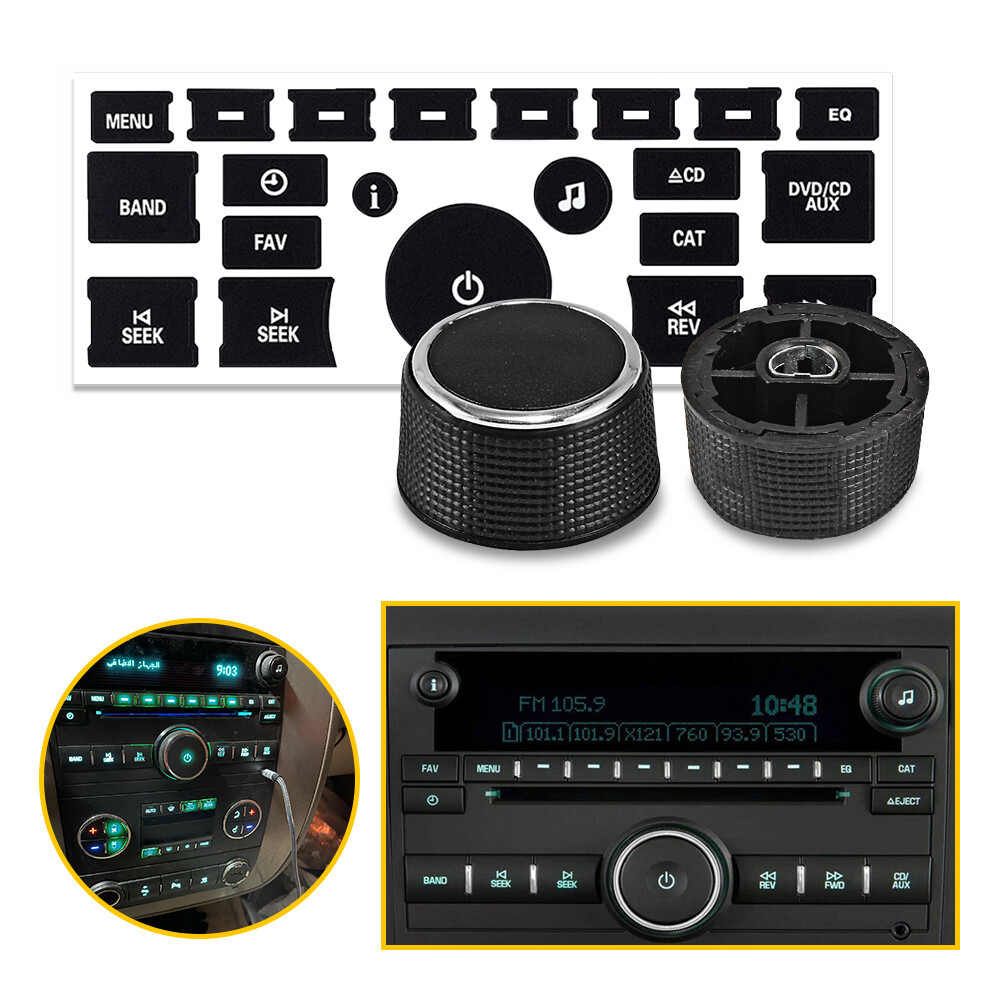 Why choose us? Free Same Day Shipping From US 60 Day Free Return 2 Years Warranty Knob Button Specifications: Type: Replacement Rear Audio Control Knob Material: High Quality ABS Plastic Color: Black and Chrome Size: 23*10mm(Approx.) Fits Rear Radio Feature: According to the original factory specifications Perfect match for the original car. Easy installation. Stable properties, high reliability. Fitment: For 2009-13 Buick Enclave Rear Volume For 2007-11 Cadillac Escalade EXT Rear Volume For 2007-11 Chevy Avalanche Rear Volume 1/2set A/C Climate Control Audio Knobs + Radio Button ReSticker Car Interio M Why choose us? Free Same Day Shipping From US 60 Day Free Return 2 Years Warranty Knob Button Specifications: Type: Replacement Rear Audio Control Knob Material: High Quality ABS Plastic Color: Black and Chrome Size: 23*10mm(Approx.) Fits Rear Radio Feature: According to the original factory specifications Perfect match for the original car. Easy installation. Stable properties, high reliability. Fitment: For 2009-13 Buick Enclave Rear Volume For 2007-11 Cadillac Escalade EXT Rear Volume For 2007-11 Chevy Avalanche Rear Volume For 2008-11 Chevy Silverado 1500 Rear Volume For 2007 Chevy Silverado 1500 New Body Style Rear Volume For 2007 Chevy Silverado 2500 HD New Body Style Rear Volume For 2008-11 Chevy Silverado 2500 HD Rear Volume For 2007 Chevy Silverado 3500 HD New Body Style Rear Volume For 2008-11 Chevy Silverado 3500 HD Rear Volume For 2007-14 Chevy Suburban 1500 Rear Volume For 2007-13 Chevy Suburban 2500 Rear Volume For 2007-13 Chevy Tahoe Rear Volume For 2009-13 Chevy Traverse Rear Volume For 2009-13 GMC Acadia Rear Volume For 2008-11 GMC Sierra 1500 Rear Volume For 2007 GMC Sierra 1500 New Body Style Rear Volume For 2008-11 GMC Sierra 2500 HD Rear Volume For 2007 GMC Sierra 2500 HD New Body Style Rear Volume For 2008-11 GMC Sierra 3500 HD Rear Volume For 2007 GMC Sierra 3500 HD New Body Style Rear Volume For 2007-13 GMC Yukon Rear Volume For 2007-13 GMC Yukon XL 1500 Rear Volume For 2007-13 GMC Yukon XL 2500 Rear Volume Decals sticker Compatible With: Fit for Buick Enclave CX & CXL 2006-2012 Fit for Chevrolet 1500/2500/3500 Trucks 2006-2014 Fit for Chevrolet Avalanche LT & LTZ 2007-2015 Fit for Chevrolet Silverado LT & LTZ 2007-2013 Fit for Chevrolet Suburban LT & LTZ 2007-2014 Fit for Chevrolet Tahoe LT & LTZ 2006-2015 Fit for Chevrolet Traverse LT & LTZ 2007-2012 Fit for GMC Acadia SLE, SLT & Denali 2006-2012 Fit for GMC Sierra SLE, SLT & Denali 1500/2500/3500 2007-2013 Fit for GMC Yukon/Yukon XL SLE, SLT & Denali 2007-2014 Fit for Saturn Outlook XR 2009-2012 This Is Aftermarket Replacement Item But Not Genuine Note: 1) All dimensions are measured by hand, there may be small deviations. 2) Color may vary slightly due to the color setting of each individual monitor. Feature: 1) 100% new and quality material. 2) Perfect to match the car, highly practical value. 3) Quickly and easily fix your faded and worn out buttons.These overlays will adhere to the factory acrylic button and to guaranteed against sun fade and pealing. 4) Easy installation, direct fit. Installation 1) Use alcohol or cleaning agent to clean installation position to ensure without grease, wax or dust before your action. 2) Peel the adhesive layer off and stick onto the position, press down for 1-2 minutes. 3) Do not wash your car within 24 hours. Package Includes: 2 x Radio Air Conditioner Climate Control Knob Button 1 x 21pcs/set Radio Control Button Decal ABOUT US 1/2set A/C Climate Control Audio Knobs + Radio Button ReSticker Car Interio M Why choose us? Free Same Day Shipping From US 60 Day Free Return 2 Years Warranty Knob Button Specifications: Type: Replacement Rear Audio Control Knob Material: High Quality ABS Plastic Color: Black and Chrome Size: 23*10mm(Approx.) Fits Rear Radio Feature: According to the original factory specifications Perfect match for the original car. Easy installation. Stable properties, high reliability. Fitment: For 2009-13 Buick Enclave Rear Volume For 2007-11 Cadillac Escalade EXT Rear Volume For 2007-11 Chevy Avalanche Rear Volume For 2008-11 Chevy Silverado 1500 Rear Volume For 2007 Chevy Silverado 1500 New Body Style Rear Volume For 2007 Chevy Silverado 2500 HD New Body Style Rear Volume For 2008-11 Chevy Silverado 2500 HD Rear Volume For 2007 Chevy Silverado 3500 HD New Body Style Rear Volume For 2008-11 Chevy Silverado 3500 HD Rear Volume For 2007-14 Chevy Suburban 1500 Rear Volume For 2007-13 Chevy Suburban 2500 Rear Volume For 2007-13 Chevy Tahoe Rear Volume For 2009-13 Chevy Traverse Rear Volume For 2009-13 GMC Acadia Rear Volume For 2008-11 GMC Sierra 1500 Rear Volume For 2007 GMC Sierra 1500 New Body Style Rear Volume For 2008-11 GMC Sierra 2500 HD Rear Volume For 2007 GMC Sierra 2500 HD New Body Style Rear Volume For 2008-11 GMC Sierra 3500 HD Rear Volume For 2007 GMC Sierra 3500 HD New Body Style Rear Volume For 2007-13 GMC Yukon Rear Volume For 2007-13 GMC Yukon XL 1500 Rear Volume For 2007-13 GMC Yukon XL 2500 Rear Volume Decals sticker Compatible With: Fit for Buick Enclave CX & CXL 2006-2012 Fit for Chevrolet 1500/2500/3500 Trucks 2006-2014 Fit for Chevrolet Avalanche LT & LTZ 2007-2015 Fit for Chevrolet Silverado LT & LTZ 2007-2013 Fit for Chevrolet Suburban LT & LTZ 2007-2014 Fit for Chevrolet Tahoe LT & LTZ 2006-2015 Fit for Chevrolet Traverse LT & LTZ 2007-2012 Fit for GMC Acadia SLE, SLT & Denali 2006-2012 Fit for GMC Sierra SLE, SLT & Denali 1500/2500/3500 2007-2013 Fit for GMC Yukon/Yukon XL SLE, SLT & Denali 2007-2014 Fit for Saturn Outlook XR 2009-2012 This Is Aftermarket Replacement Item But Not Genuine Note: 1) All dimensions are measured by hand, there may be small deviations. 2) Color may vary slightly due to the color setting of each individual monitor. Feature: 1) 100% new and quality material. 2) Perfect to match the car, highly practical value. 3) Quickly and easily fix your faded and worn out buttons.These overlays will adhere to the factory ac