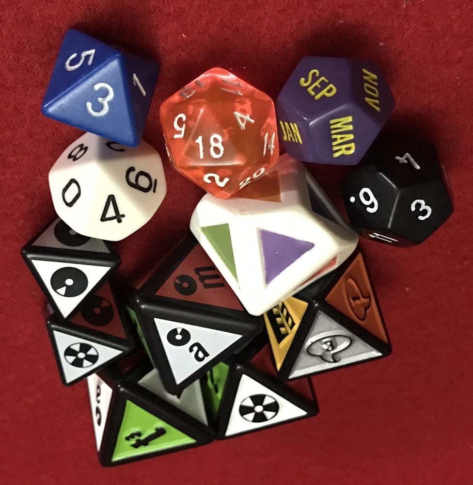 (12x) Multi-Sided Polyhedral Dice (8, 10, 12 & 20 Sided) D&D Magic RPG Role Playing Crafts Please see pics for details and overall condition. Thanks for looking and supporting our small business. We are blessed to be working from home, with the best coworkers we could ever ask for, each other! ❤️With love and blessings, (-: Dee & Chi :-)