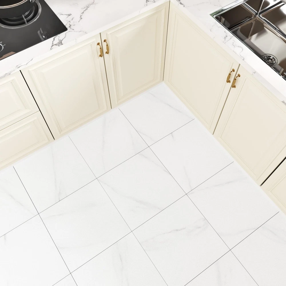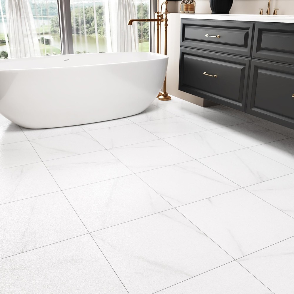 Introducing our versatile and stylish peel and stick floor tile, the perfect solution for quick and easy flooring updates! Our vinyl peel and stick flooring offers a hassle-free way to transform any space with minimal effort and maximum impact. Made with high quality materials, our vinyl flooring are durable, waterproof, and scratch-resistant, making them ideal for high-traffic areas like kitchens, bathrooms, and even garages. The white peel and stick tile design adds a touch of sophistication and modern elegance to your floors, enhancing the aesthetic appeal of any room. With the convenience of self-adhesive technology, our tile sticker can be easily installed without the need for messy glue or special tools. Simply peel off the backing and stick the tiles onto any clean, flat surface for a seamless and professional finish. These marble floor tile are perfect for renters looking for a temporary flooring solution that is easy to remove and won't damage the existing floors. The 12x12 inch size of our peel and stick vinyl flooring allows for easy customization and trimming to fit any space, making them suitable for various applications such as kitchen flooring, bathroom floors, flooring for bedroom, dance floors, and more. The kitchen tile floor can also be used to update garage waterproof flooring, creating a clean and modern look in your workspace. Not only are our floor covering practical and functional, but they are also easy to maintain and clean. The waterproof vinyl flooring is resistant to water, oil, and scratches, ensuring long-lasting durability and a beautiful finish for years to come. Say goodbye to sticky floor tiles that peel or bubble. Our self adhesive stick on flooring are designed to stay in place and withstand daily wear and tear. Convenient Size Options: Peel and stick floor tile are made of vinyl and the thickness is 1.5 mm. Available in convenient 12" x 12" tiles, we offer two versatile packs to suit your needs: A box containing 4 tiles (4 sq ft) for smaller projects or 20 tiles (20 sq ft) for larger transformations. Perfect for DIY enthusiasts seeking flexibility Premium white grey textured peel and stick flooring: Elevate your living space with our sophisticated white peel and stick tile that boast a marble texture. These vinyl flooring not only exude elegance in any room but are also remarkably durable. White brings timeless versatility and bright style Multi-Purpose: Floor tiles peel and stick waterproof is an affordable solution for a quick and stylish floor upgrade. Floor tiles is incredibly easy to install and cut to fit, allowing for seamless integration into any layout. Peel and stick tile floor can be used in kitchen flooring, bathroom, bedroom, living room, office, garage floor, kids room, camper, warehouse, hallway, gym, dance studio, laundry room, farmhouse, etc Simple Clean & Long-Lasting Durability: Say goodbye to cumbersome floor care. With bathroom floor tile water and oil resistance, heat and scratch resistance, our stick on floor tiles are a breeze to clean. Simply wipe them down with a damp cloth or mop for effortless maintenance Self Adhesive & Removable: Please clean the surface before use and make sure to apply the floor sticker on a flat, dry and clean floor. No grouting or special tools needed for install. To remove waterproof flooring, soften the glue with a hair dryer, you can easily lift it off by inserting a pry bar or chisel into the edge of the renter friendly floor peel and stick. Suitable for renters and apartments