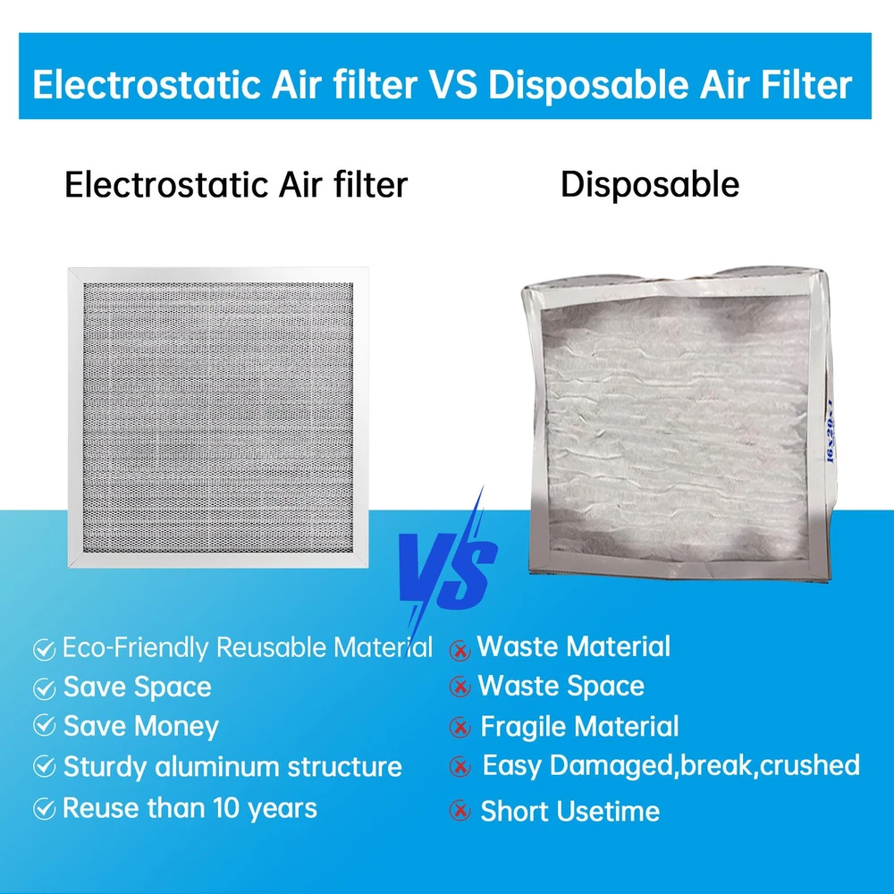 12x12x1 Electrostatic Air Filter HVAC AC Furnace Filter,8,Reusable Washable, Lasts a ,Permanent Air Filter,Breathe Fresher,Home And Office(Actual Size:11.69x11.69x0.86 Inch) Durable and Long-lasting:The Electrostatic Air Filter is built to last. Made with an aluminum frame, it can withstand strong winds without deforming or breaking. This means you won't have to replace your air filter as frequently, saving you time and money in the long run Improved Air Quality:With its pleated layers, the air filter is more efficient at capturing particles than other filters on the market. It can absorb up to 90% of dust, pollen, pet hair, and other particles, making the air in your home cleaner and healthier to breathe. Plus, its 8 level ensures that it meets industry standards for air filtration Easy to Install and Maintain:Installing the air filter is a breeze. Simply place it in the slot of your furnace, HVAC, or AC system. And when it's time to clean it, just wash it with water and a little detergent. The filter dries naturally and can be re-installed. We recommend cleaning it every 3 months and using gloves (not included) to change Waste Less And Friendly:The air filter is reusable, which means you won't have to constantly replace it like disposable filters. This not only saves you money, but it also reduces waste and helps protect the environment. Plus, its washable design means you won't have to worry about disposing of it properly Versatile Compatibility:The air filter is with a wide range of furnace, HVAC, and AC systems. This means you won't have to worry about finding a specific filter for your system. Plus, its universal design makes it easy to install and maintain, no matter what type of system you have