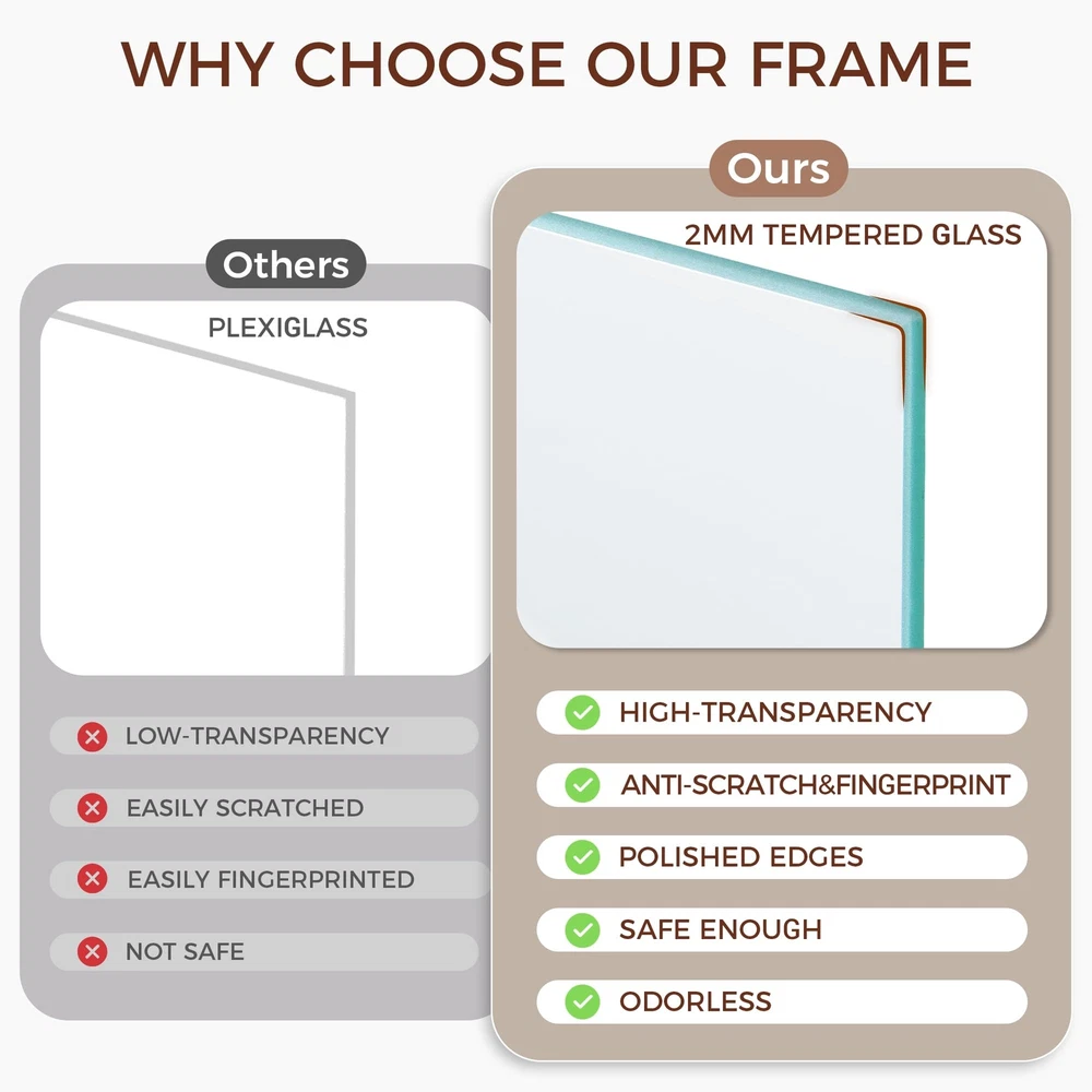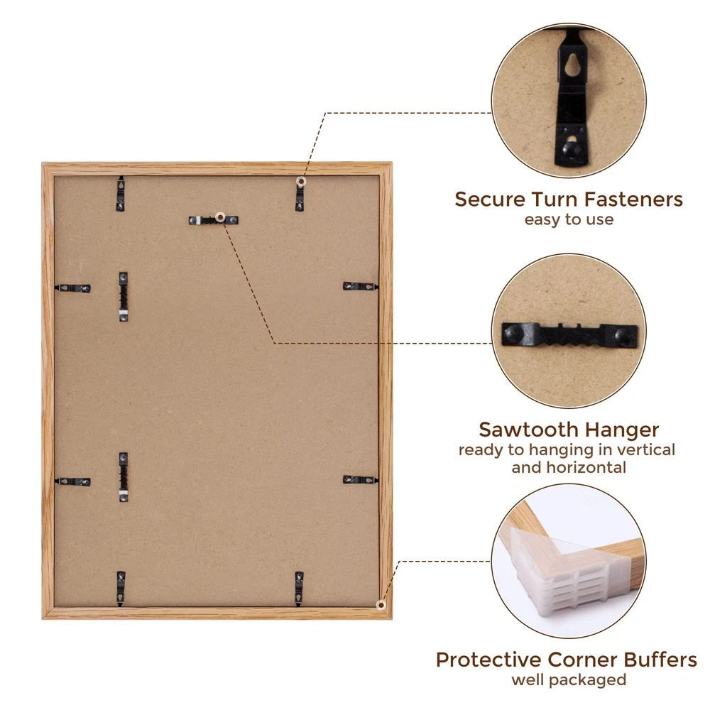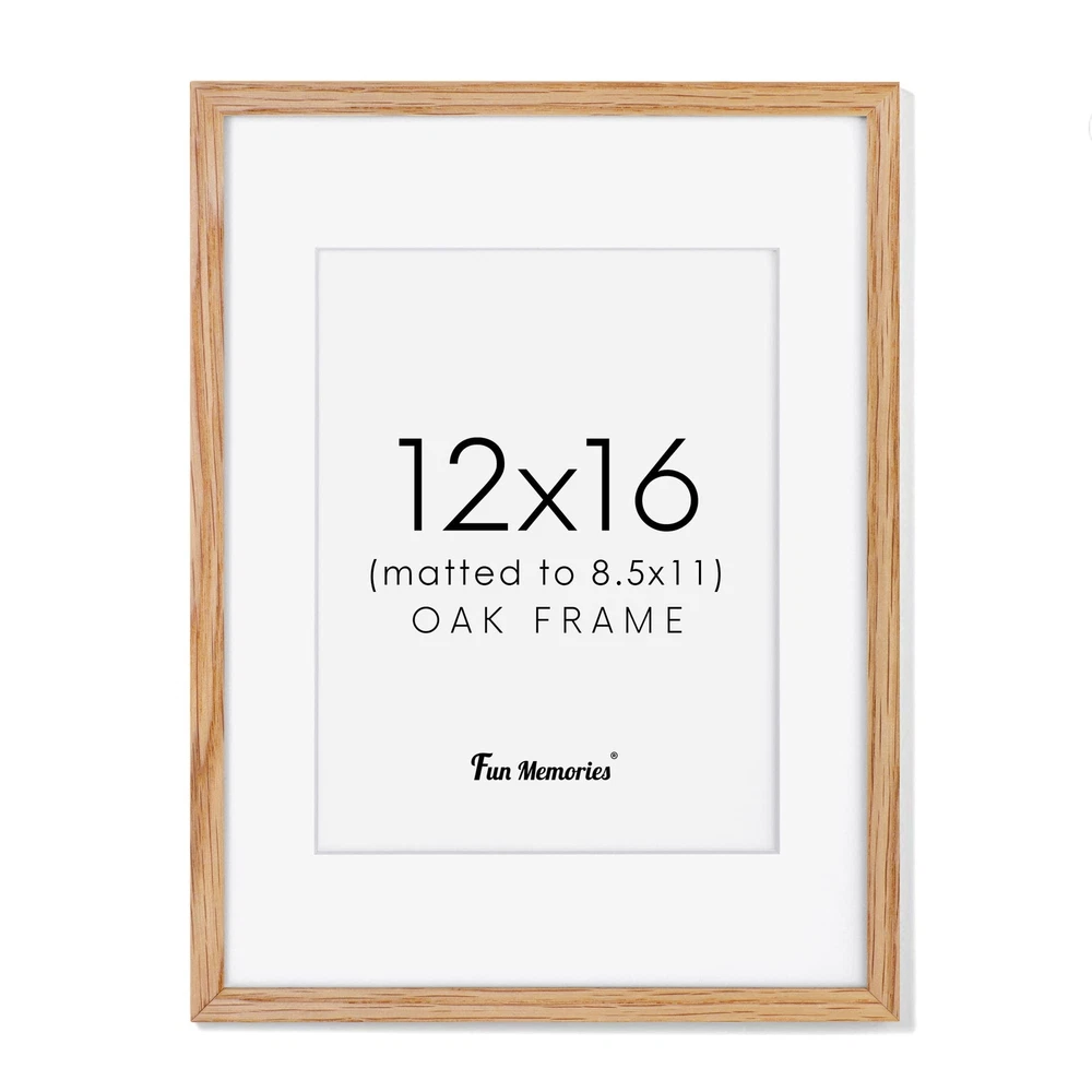 NATURAL SOLID OAK WOOD FRAME - This 12x16 picture frame is made of high-quality 100% solid oak wood, the natural wood grains on this real oak wood picture frame lends it an authentic look. This poster frame comes with 1.2mm ivory mat for visualization purposes, and 12x16 picture frame can be matted to 8.5x11. HIGH-DEFINITION TEMPERED GLASS - This oak wood picture frame comes with sturdy 2.0mm tempered glass front, which is clear and lightweight, giving your photo in a good view condition and protecting them from scratches ,fingerprints, dirt, water. What's more, our glass with edge polished that protect you from scratching by sharp glass edges. EASY TO CLIP AND HANG - These wall photo frames are not only stylish and affordable, they're durable as well as easy to clip and hang. Can be hung horizontally or vertically to fit in the space available. Hanging hardware is included so you can display your frame as soon as it arrives! WELL PACKAGED - Each 12"x16" picture frame is shrink-wrapped and secured with corner protectors, all of our 12x16 poster frames are packaged in custom-made corrugated boxes so your frames arrive in pristine condition. SLEEK & MINIMALIST HOME DECOR - The neutral oak finish of this wood picture frame set brings out all of the color in your poster, drawing attention to it like never before, you can display your artwork in the most sophisticated way possible with. The excellent craftsmanship and neutral color make it a classic addition to any room - or office!