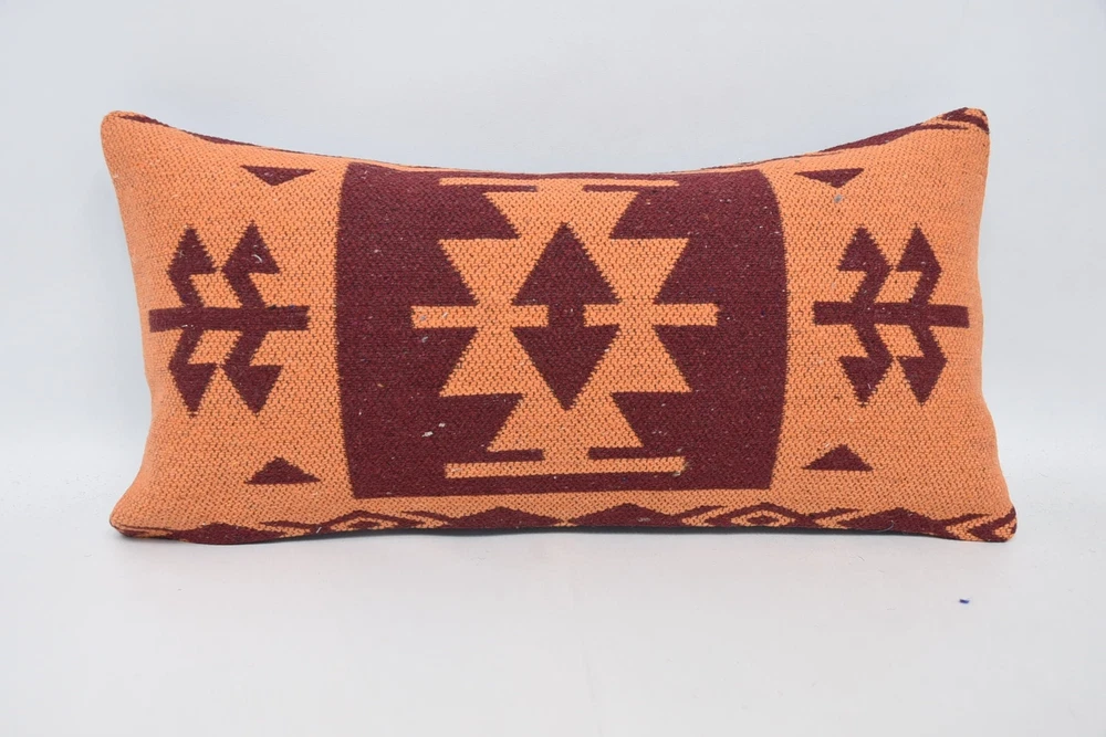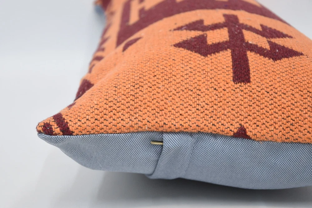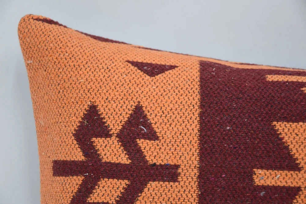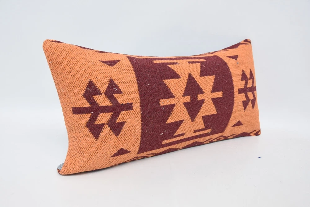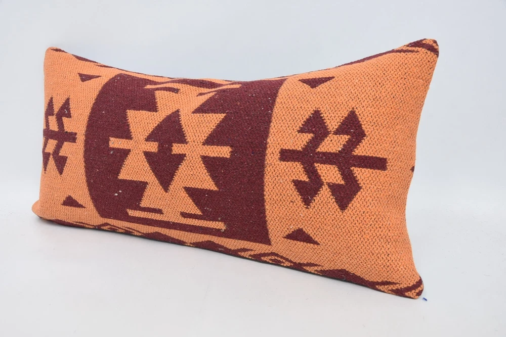 12"x24" Orange Kilim Pillow, Turkish Pillow, Personalized Pillow