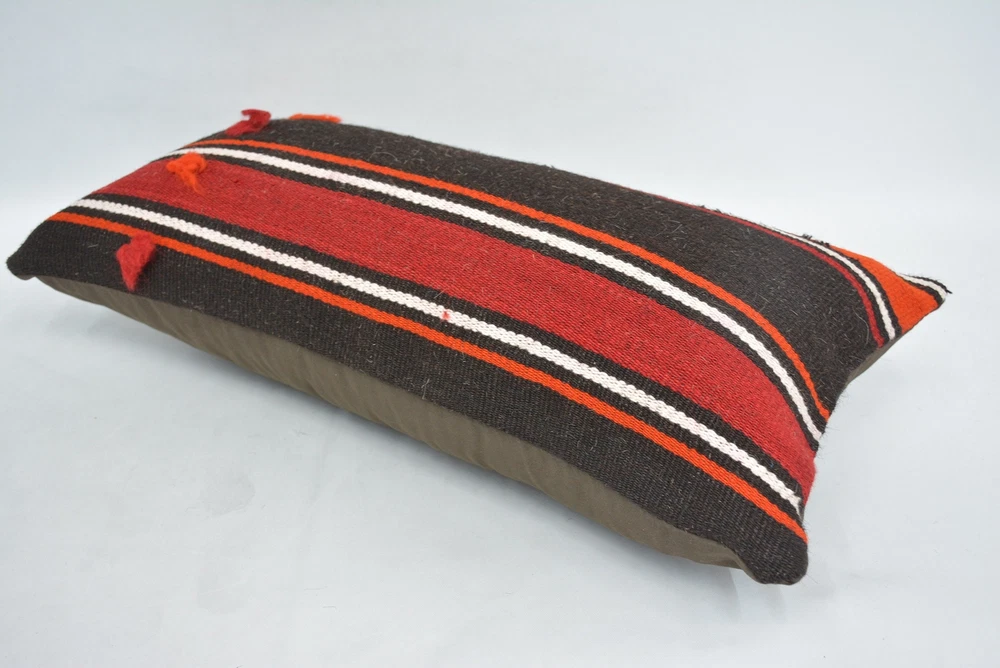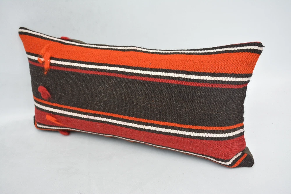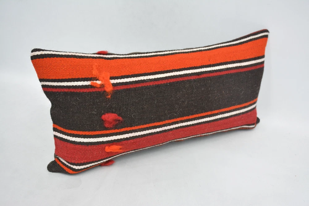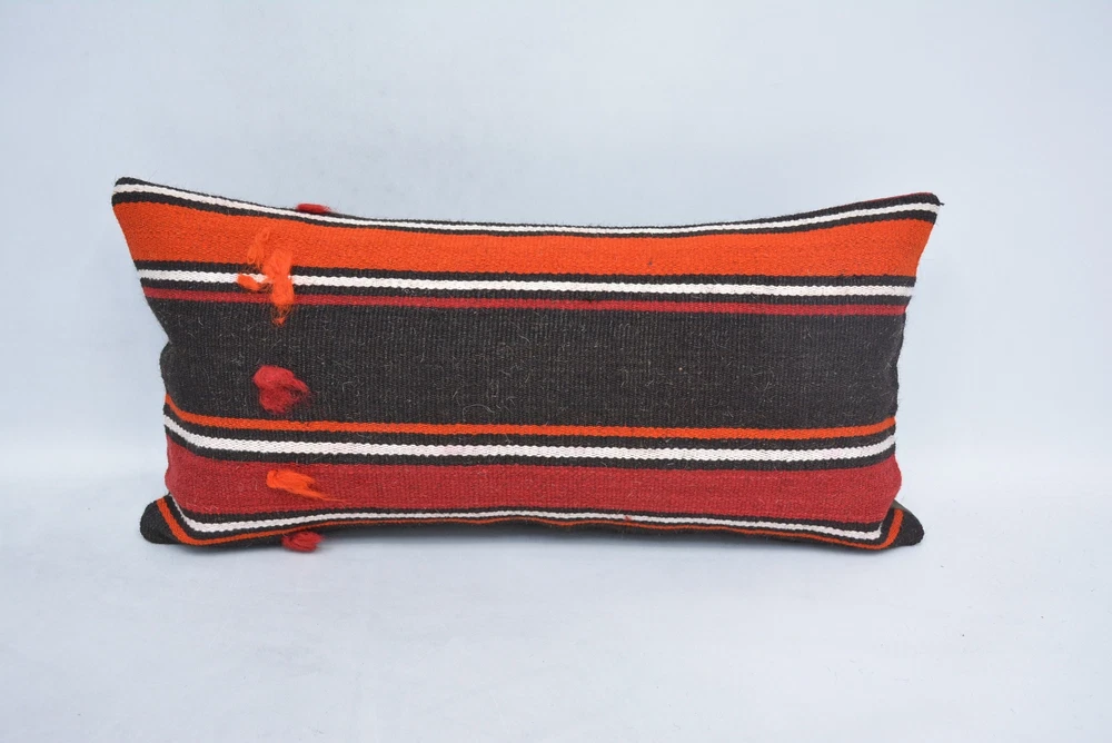 12"x24" Orange Pillow Case, Turkish Kilim Pillow, Pillow for Couch