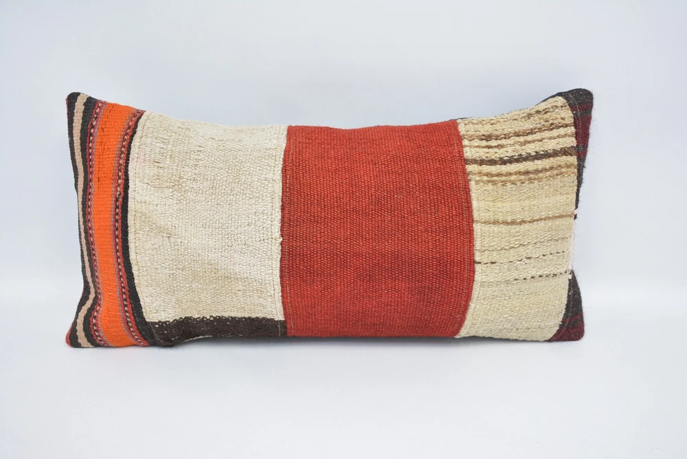 12"x24" Red Kilim Pillow, Kilim Pillow Cover, Personalized Pillow