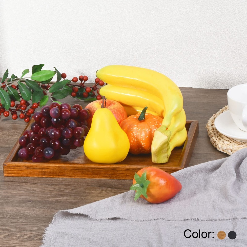 The wooden tray is great for serving from appetizers to desserts for hosting family gatherings or dinner parties. It can also be used as a display tray for potted plants, candles, decorative fills, or other ornamental items. Specification Color: Black Shape: Rectangle Material: Wood Height: 2.3cm / 0.91 inch Outer Size: 30 x 20cm / 11.81 x 7.87 inch (L*W) Base Inner Size: 27.5 x 17.5cm / 10.83 x 6.89 inch (L*W) Package Content: 1 x Rustic Wooden Platter Material Made of solid wood with a glaze-treated surface to ensure durability and ease of cleaning and maintenance, good heat insulation, and reusable. Advantage The plate features a raised edge design making it non-slip and resistant to accidental spills or drops. The elevated rim also provides a sturdy grip for carrying. Notice It is suggested to clean the tray with a damp cloth and mild detergent to avoid damaging the surface. Ensure the tray is completely dry before storing it away. Color: Brown; Shape: Rectangle; Height: 2.3cm / 0.91 inch; Outer Size: 30 x 20cm / 11.81 x 7.87 inch (L*W); Base Inner Size: 27.5 x 17.5cm / 10.83 x 6.89 inch (L*W); Package Content: 1 x Rustic Wooden Platter Material: Made of solid wood with a glaze-treated surface to ensure durability and ease of cleaning and maintenance, good heat insulation, and reusable Advantage: The plate features a raised edge design making it non-slip and resistant to accidental spills or drops. The elevated rim also provides a sturdy grip for carrying Application: The wooden tray is great for serving from appetizers to desserts for hosting family gatherings or dinner parties. It can also be used as a display tray for potted plants, candles, decorative fills, or other ornamental items Notice: It is suggested to clean the tray with a damp cloth and mild detergent to avoid damaging the surface. Ensure the tray is completely dry before storing it away
