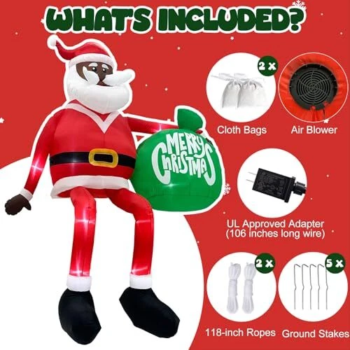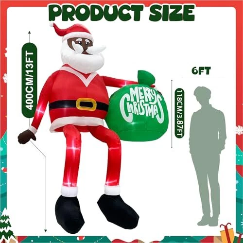 Return Policy Fast Delivery Trusted seller 13 FT Giant Christmas Inflatable Outdoor Decoration, Climbing Black Inflatable Santa Claus Outdoor with Present Bag, Christmas Blow Ups Outdoor Decor Built-in LED Lights for Yard Eaves Outside Product Description Premium & Durable Materials: Crafted from premium 210T polyester materials, the giant Christmas inflatables outdoor decorations are built to withstand various weather conditions. The robust construction ensures that the black Santa Claus inflatable remains in perfect shape throughout the holiday season, providing long-lasting use year after year. The durable fabric resists tearing and fading, ensuring your decoration remains vibrant and intact. Extra Large Christmas outdoor inflatables: Measure 13 feet tall, this huge black Santa blow up yard decorations makes a striking outdoor decoration. Its unique design features a Black Santa Claus in a sitting position, with attention-grabbing thin legs and a large present bag, adding a festive touch to your yard garden eaves. Eye-Catching Night Effects: Equipped with 9 energy-saving LED lights, this large inflatable Christmas decorations outdoor enhance nighttime visibility, making it a stunning focal point in your yard or on your eaves. The lights add a warm and inviting glow, attracting attention and spreading holiday cheer. Quick and Efficient Setup: This Christmas decorations outside inflatable includes a built-in 1.2A blower that allows it to fully inflate quickly and efficiently. The 1.25A UL-approved plug with a 106.3-inch long power cord eliminates the need for extension cords, making the setup process simple and hassle-free, and place it anyw you want. With just a few minutes of setup time, your house will be transformed into a festive wonderland. Double Stability: The package comes with 5 iron ground stakes, 2 x 118.11-inch fastened ropes, and 2 sandbags to ensure the Christmas decorations inflatables remain stable and secure, even in windy conditions. The support structure of blow up Santa outdoor decor has been tested over and over again, so you can confidently keep it outdoors and focus on enjoying your Christmas party. Shipping Returns Payment Shipping Shipping is FREE to all addresses other than APO/PO boxes in the lower 48 states. All our stock ships from US-based warehouses. Shipped via USPS or UPS (depending on location and package weight) Unless stated otherwise, all orders will ship within 24-72 hours of your payment being processed. Check our feedback to see the great reviews of FAST shipping we offer. Returns Seller does not accept returns Payment We currently accept payment via eBay managed payments only. Once payment is cleared, we will dispatch your shipment within 1-3 business days. Please refer to the "Shipping" tab for more information regarding shipping speed to your destination.