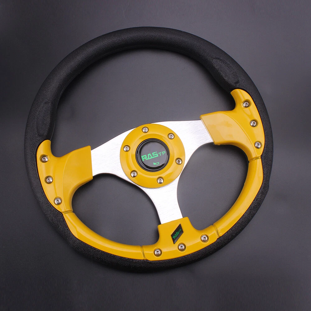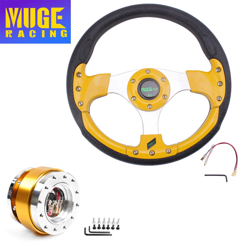 13" Gold Racing Steering Wheel with Ball Quick Release Adapter Kit+Horn Button 【Steering Wheel】 100% brand new Suitable for any car and model Easy to install Suede Leather With Black Stitching Specification: Style:Racing style Material:PU+Aluminum Diameter: 13" Steering wheel depth:1.3" Fitment:Universal 【Quick Release Adapter】 Billet aluminum body, good bearing capacity, durable in using. With 6 long screws and 6 short screws for various snap off needs, ball-lock type mechanism for best locking fit and usability. Easy to operate, direct bolt-on, fast detach allows steering wheel to be removed quickly. Push-pin security feature prevents premature unlocking, with screw-driven tools for easy locking. Compatible with 6-hole steering wheel hub kit, designed for many aftermarket racing steering wheel. Package include only a steering wheel and a quick release adapter, must be installed with hub adapter (not include, need purchase separately). PACKAGE INCLUDED: 1 x Steering Wheel Kit 1 x Quick Release Adapter Kit All items are Brand New unless stated otherwise on the listing. We sell DIY (Do It Yourself) Items with a few exceptions. We take no responsibility in teaching you how to install. Professional installation is strongly recommended. SHIPPING INFORMATION PAYMENT WARRANTY ABOUT US CONTACT US SHIPPING INFORMATION We will only ship this item to buyers by Normal Mail, please confirm your address is correct, and if you want to change the delivery address, just feel free to contact us when you purchase. Usually, we will ship the orders out and upload the tracking number within 1-2 business days(Monday to Saturday from 8:30am-5:30pm) after you complete the payment. PAYMENT We will only accept eBay payment. Please pay using eBay payment ONLY within 7 days from the date of transaction be made. WARRANTY Please inspect your order upon receipt.No damage claims will be honored after 14 days of delivery. All item we sold come with 90 days defective warranty from the date. ABOUT US We are a powerful factory producing auto parts,and we have a professional sales and after-sales team that can provide you with excellent products and services. CONTACT US For any reason you want to contact us,We aim at satisfying every visitor, no matter what kind of situation you meet with, we will be right here to serve you. Please contact our team. If you are happy with the transaction with us, leaving us an ALL-5-STAR positive feedback would be greatly appreciated. Have a good shopping.