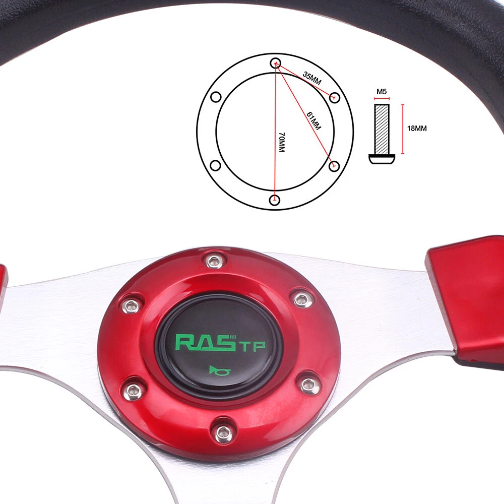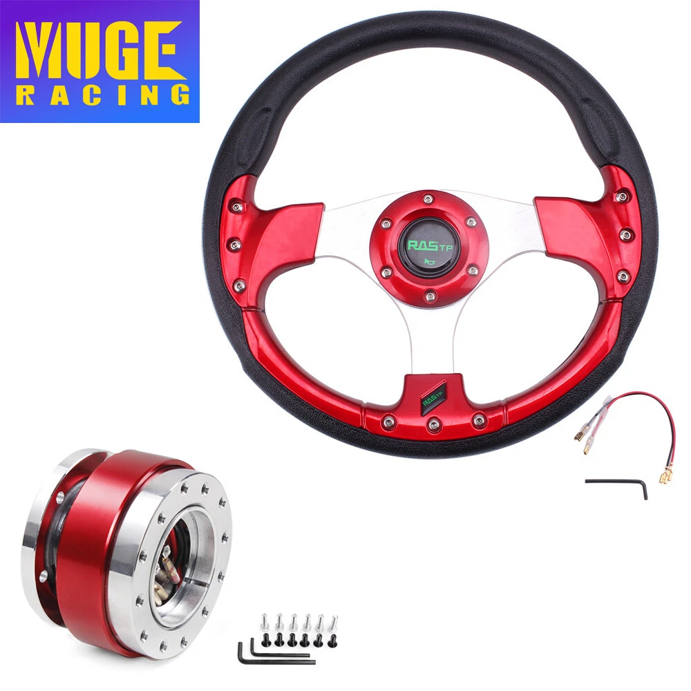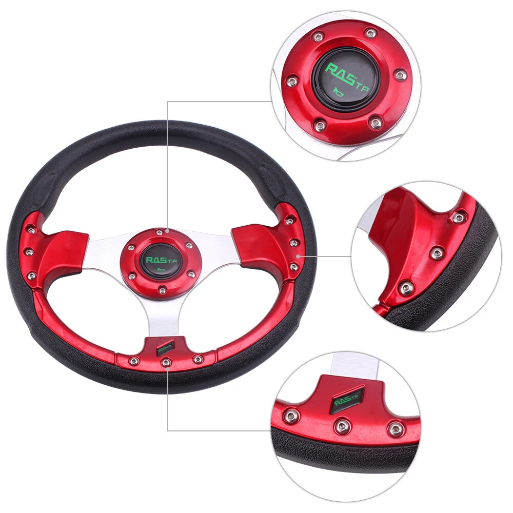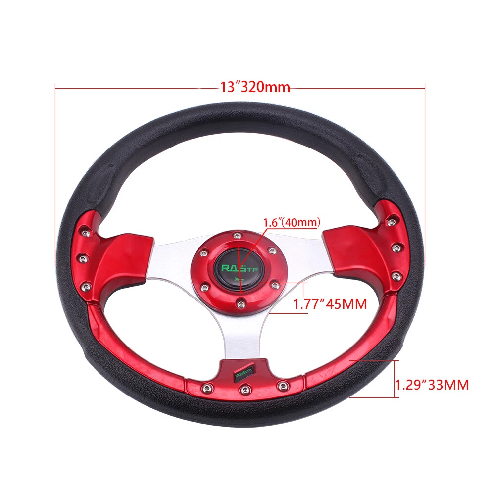 13" Red Racing Steering Wheel with Ball Quick Release Adapter Kit+Horn Button 【Steering Wheel】 100% brand new Suitable for any car and model Easy to install Suede Leather With Black Stitching Specification: Style:Racing style Material:PU+Aluminum Diameter: 13" Steering wheel depth:1.3" Fitment:Universal 【Quick Release Adapter】 Billet aluminum body, good bearing capacity, durable in using. With 6 long screws and 6 short screws for various snap off needs, ball-lock type mechanism for best locking fit and usability. Easy to operate, direct bolt-on, fast detach allows steering wheel to be removed quickly. Push-pin security feature prevents premature unlocking, with screw-driven tools for easy locking. Compatible with 6-hole steering wheel hub kit, designed for many aftermarket racing steering wheel. Package include only a steering wheel and a quick release adapter, must be installed with hub adapter (not include, need purchase separately). PACKAGE INCLUDED: 1 x Steering Wheel Kit 1 x Quick Release Adapter Kit All items are Brand New unless stated otherwise on the listing. We sell DIY (Do It Yourself) Items with a few exceptions. We take no responsibility in teaching you how to install. Professional installation is strongly recommended. SHIPPING INFORMATION PAYMENT WARRANTY ABOUT US CONTACT US SHIPPING INFORMATION We will only ship this item to buyers by Normal Mail, please confirm your address is correct, and if you want to change the delivery address, just feel free to contact us when you purchase. Usually, we will ship the orders out and upload the tracking number within 1-2 business days(Monday to Saturday from 8:30am-5:30pm) after you complete the payment. PAYMENT We will only accept eBay payment. Please pay using eBay payment ONLY within 7 days from the date of transaction be made. WARRANTY Please inspect your order upon receipt.No damage claims will be honored after 14 days of delivery. All item we sold come with 90 days defective warranty from the date. ABOUT US We are a powerful factory producing auto parts,and we have a professional sales and after-sales team that can provide you with excellent products and services. CONTACT US For any reason you want to contact us,We aim at satisfying every visitor, no matter what kind of situation you meet with, we will be right here to serve you. Please contact our team. If you are happy with the transaction with us, leaving us an ALL-5-STAR positive feedback would be greatly appreciated. Have a good shopping.