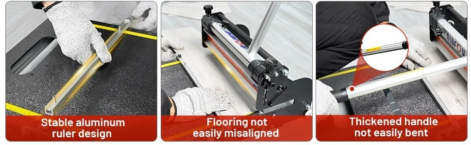ใ๐๐๐๐๐ถ๐ป๐ด ๐ ๐๐น๐๐ถ๐ฝ๐น๐ฒ ๐ ๐ฎ๐๐ฒ๐ฟ๐ถ๐ฎ๐น๐ใ This Guillotine-style Vinyl Floor Cutter can cut Vinyl Plank and LVT, LVP, SPC, PVC, VCT, WPC. Floor cutting up to 13โwide and 6mm thick . This must-have, highly efficient construction tool eliminates the need for a noisy power saw and works great on vinyl plank flooring ใ๐ฆ๐๐๐ฟ๐ฑ๐ ๐๐ผ๐ป๐๐๐ฟ๐๐ฐ๐๐ถ๐ผ๐ป ๐ฎ๐ป๐ฑ ๐ฆ๐ต๐ฎ๐ฟ๐ฝ ๐๐น๐ฎ๐ฑ๐ฒใ High-Quality Steel And Aluminum Construction make the vinyl floor cutter strong and durable. And It comes with a razor-sharp blade, which can be re-sharpened as well as replaced to prolong the life of this durable tool. And provides an easy and clean-edge cutting on floor planks ใ๐ ๐ฒ๐ฒ๐ ๐ฎ ๐ฉ๐ฎ๐ฟ๐ถ๐ฒ๐๐ ๐ผ๐ณ ๐๐๐๐๐ถ๐ป๐ด ๐ก๐ฒ๐ฒ๐ฑ๐ใ This is a professional 13โVinyl Flooring Cutter designed to make Straight, Lengthwise and 0-45ยฐAngle cuts on all vinyl-based flooring. When Lengthwise Cutting, the unique aluminum ruler design makes the vinyl floor stable and precise when cutting ใ๐๐ฑ๐ท๐๐๐๐ฎ๐ฏ๐น๐ฒ ๐๐๐๐๐ถ๐ป๐ด ๐๐น๐ฎ๐ฑ๐ฒ ๐๐ฒ๐ถ๐ด๐ต๐ใ KU340 has two knobs on the machine head to adjust the blade height. When Lengthwise cutting, you need to adjust the knob, if you cut from the right, so that the right knob goes down, then the right blade will go down. The blades are not on the same level, making cutting easier. When straight cutting and Angle cutting, it is necessary to adjust the two knobs and then bring the blade down to the bottom, the blade is on the same level, and then cut. You adjust the knob according to your needs, trying several times to make the cutting easy ใ๐๐ฎ๐ฏ๐ผ๐ฟ-๐๐ฎ๐๐ถ๐ป๐ด ๐๐ฎ๐ป๐ฑ๐น๐ฒ ๐ฎ๐ป๐ฑ ๐ฆ๐ฎ๐ณ๐ฒ ๐๐ผ ๐จ๐๐ฒใ Thickened handle, not easy to bend. There is also a safety lock to prevent the blade from moving when not in use. Floor cutter with wheels you can move it easily. These outstanding features make it the perfect vinyl floor cutter for DIY home improvement and repair projects as well as professional floor installation jobs. ใTechnical Detailsใ Material๏ผโAluminum, Steel, ABS Max Cut Width: 13โ (340 mm) Max Cut Thickness: 6 mm Max 45ยฐ Angle Cut Width: 8.2โ (210 mm) Item Weight: 18.8lbs Cutting Angle: Lengthwise, Straight, Angle Laminate Flooring๏ผNO Vinyl Flooring๏ผYes Yes Solid Wood Flooring๏ผNO CONDITION: USED Slight signs of use, but will not prevent you from using it again.