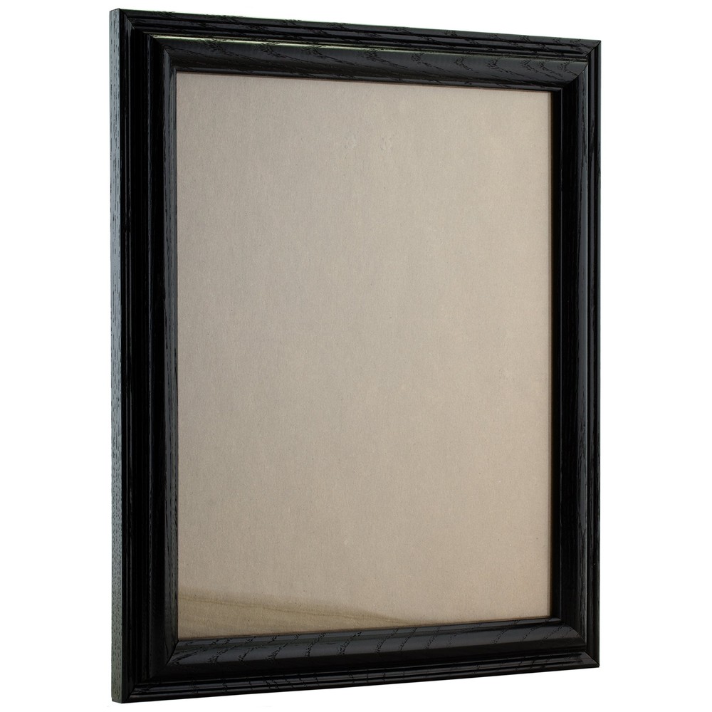 This brand new picture frame is manufactured in the USA at our facility in Ithaca, Michigan using the best materials and tools available. Our picture and poster frames LARGER THAN OR EQUAL TO 12x18 Inch (inside dimensions) include clear STYRENE facing, a rigid cardboard backing and hanging hardware. Some assembly is required to attach the hanging hardware to the frame. Visit our seller info page for assembly instructions. Hanging hardware includes: (2) 1" Nails, (1) 30# capacity Wall Hanger, (1) 4' length of Hanging Wire, (2) D-Rings, (2) 1/2" Screws. Before hanging your frame, please remember to peel off the blue protective film from the styrene facing (or acrylic facing if you upgraded) for maximum clarity. Our picture frames will compliment any space that you hang them in, they make great gifts and they will protect and display your photographs and artwork for years to come. If you have any questions or comments, please do not hesitate to us. Feel free to visit our storefront and seller info pages to browse our extensive selection of frames, read customer feedback or review our policies and info. At the end of the day we want you to be completely happy with your purchase. Be sure to add us to your list of favorites so you can easily find us the next time you need a quality picture frame. Thank you for shopping with us. We are and we are framing the world.customer at a time. Contemporary style; shiny black with wood grain finish Frame includes: clear acrylic facing, rigid cardboard backing and wire hanging hardware kit (some assembly required) Frame holds a 6 inch by 23 inch photo/print/poster (viewable area is slightly smaller) Frame moulding is 1 inch wide; real ash; solid wood Made in the U.S.A.