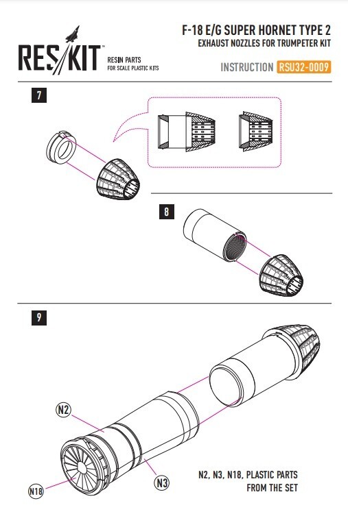 Scale: 1:32 Manufacturer: RESKIT Country/Region of Manufacture: Ukraine High-quality details. Paint: Unpainted, Unassembled, Kit do not contain paints and glue. Condition: New in Box Features: Kit Resin exhaust nozzles set Type of product: Exhaust nozzles Recommended kits: Trumpeter Suitable for models: F-18, F18, F 18, F-18E, F18E, F 18E, F-19F, F18F, F 18F, HORNET, SUPER HORNET, Ф-18, Ф18, Ф 18, Ф-18Е, Ф18Е, Ф 18Е, Ф-18Ф, Ф18Ф, Ф 18Ф, ХОРНЕТ, СУПЕР ХОРНЕТТ, F/A-18, MCDONNELL DOUGLAS, BOEING, SUPER HORNET, EA-18G Quality set, simple assembly. Suitable for experienced modelers, as well as for beginners. Due to the use of modern production technologies, all the details of the model fit perfectly, thanks to this, you can get an excellent result with minimal effort. ----------- This is a plastic model kit. Assembly and painting is required. Paint and glue is NOT included. Item Type: Scale model kit Commodity Attribute: Assembly The model is a plastic assembly model and needs to be assembled and painted by yourself You need an extra purchase of the glue, paint and so on!