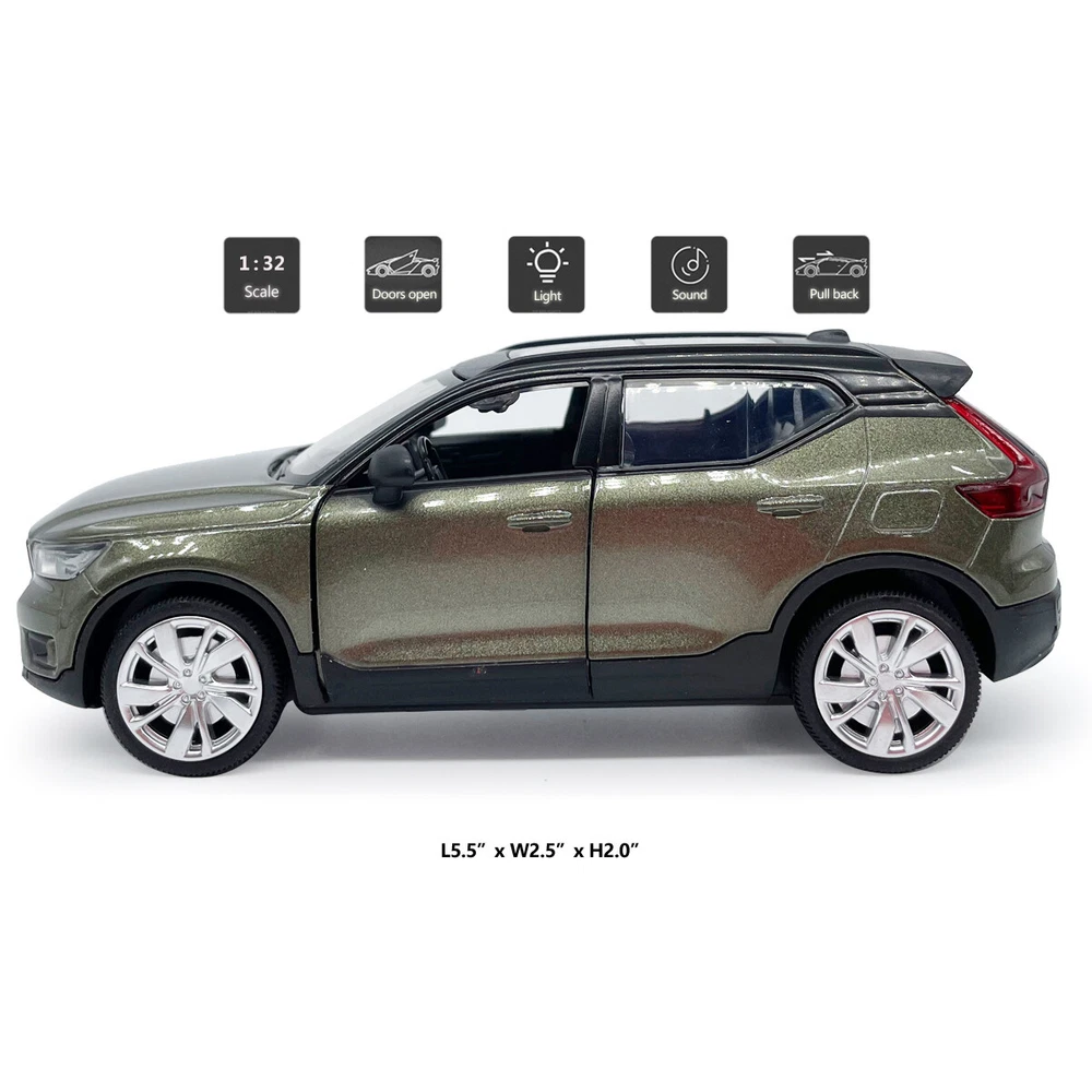 1/32 Scale XC40 SUV Model Car Diecast Vehicle Metal Toys for Kids Boys Pull Back Item Type Diecast & Toy Vehicles Scale 1:32 Material Diecast and ABS Color Black and green Dimension About L5.5" x W2.5" x H2.0" (L14.0 x W6.3 x H5.0 cm) Vehicle Type SUV Function *Pull back *Two doors can be open *Press the car or open the door, it will make sound and light Power 3 x AG13/LR44 button cell, power is just for light and sound Packing Packed in original color box, in excellent condition Tips *Great choice of gift for kids, especially for Birthday, Christmas and New Year Gift *Great item for collector, business gift, home decoration, office decoration, display Warning Don't put in mouth/Keep Away from Fire/Not for Children under 3 Years Due to manual measurement, please allow a little error. Package include 1 x 1:32 Scale Volvo XC40 Model Car (Batteries Not Included) Payment Delivery details Terms of sales Payment We accept paypal only. Delivery details We ship orders within 24 hours upon receipt of payment. Terms of sales We provide great products and service. If you have any problems with the order,please do contact us before leaving negative feedback and opening case on eBay.