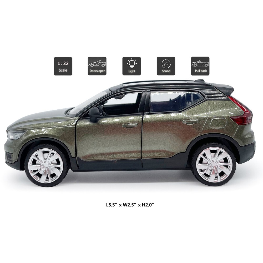 1:32 XC40 Model Car Diecast Toy Cars Door Open Light Sound Boys Toys Gifts Green Item Type Diecast & Toy Vehicles Scale 1:32 Material Diecast and ABS Color Green Dimension About L5.5" x W2.5" x H2.0" (L14.0 x W6.3 x H5.0 cm) Vehicle Type SUV Function *Pull back *Two doors can be open *Press the car or open the door, it will make sound and light Power 3 x AG13/LR44 button cell, power is just for light and sound Packing Packed in original color box, in excellent condition Tips *Great choice of gift for kids, especially for Birthday, Christmas and New Year Gift *Great item for collector, business gift, home decoration, office decoration, display Warning Don't put in mouth/Keep Away from Fire/Not for Children under 3 Years Due to manual measurement, please allow a little error. Package include 1 x 1:32 Scale Volvo XC40 Model Car (Batteries Not Included) Payment Delivery details Terms of sales Payment We accept paypal only. Delivery details We ship orders within 24 hours upon receipt of payment. Terms of sales We provide great products and service. If you have any problems with the order,please do contact us before leaving negative feedback and opening case on eBay.
