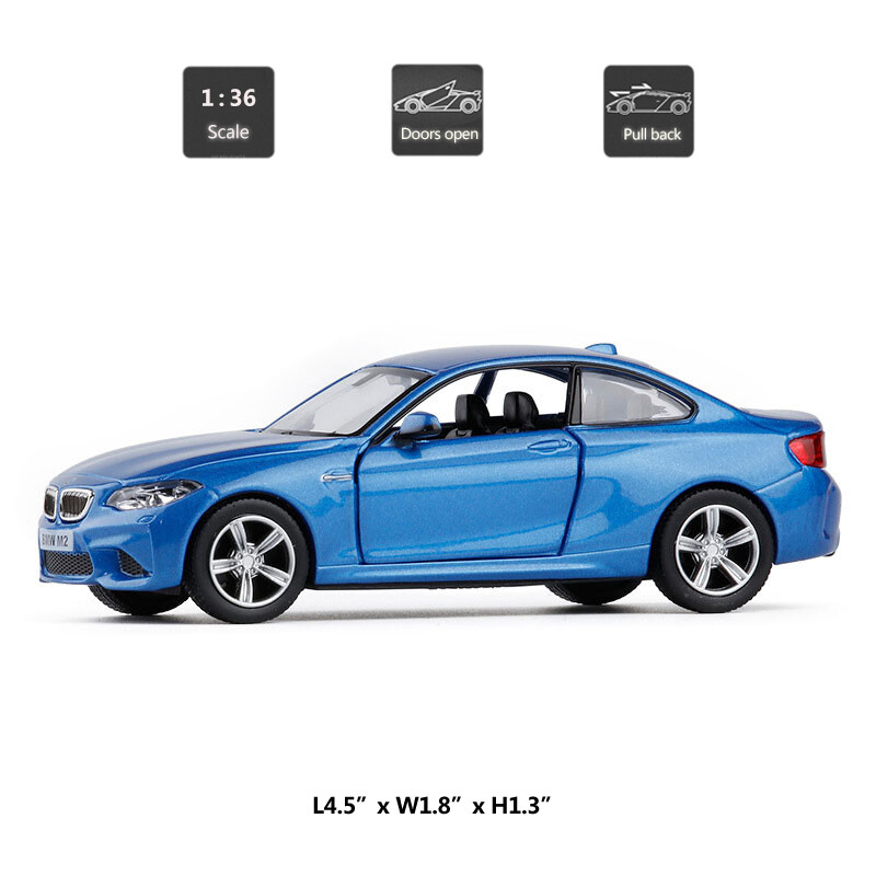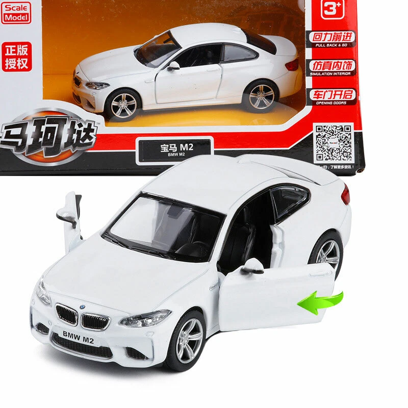 This 1/36 scale BMW M2 diecast model is a fantastic mini replica with impressive details! The pull-back function makes it fun for kids, while the opening doors add realism. The sturdy metal and ABS construction feels premium, and the white-and-blue color scheme looks sleek. Perfect as a gift or collectible—great size for play or display. Kids and car enthusiasts will love it!