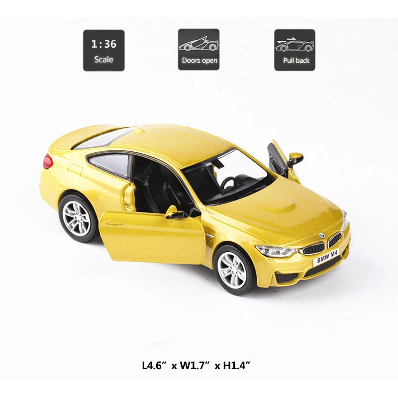 1/36 Scale BMW M4 Diecast Metal Alloy Model Car Toy Vehicle for Boys Kids Gifts Item Type Diecast & Toy Vehicles Scale 1:36 Material Diecast and ABS Color Red and gold Dimension About L4.6" x W1.7" x H1.4" (L11.8 x W4.4 x H3.5 cm) Vehicle Type Car Function *Pull back *Two doors can be open Packing Packed in original color box, in excellent condition Tips *Great choice of gift for kids, especially for Birthday, Christmas and New Year Gift *Great item for collector, business gift, home decoration, office decoration, display Warning Don't put in mouth/Keep Away from Fire/Not for Children under 3 Years Notice Due to manual measurement, please allow a little error Package include 1 x 1:36 Scale BMW M4 Model Car Payment Delivery details Terms of sales Payment We accept paypal only. Delivery details We ship orders within 24 hours upon receipt of payment. Terms of sales We provide great products and service. If you have any problems with the order,please do contact us before leaving negative feedback and opening case on eBay.
