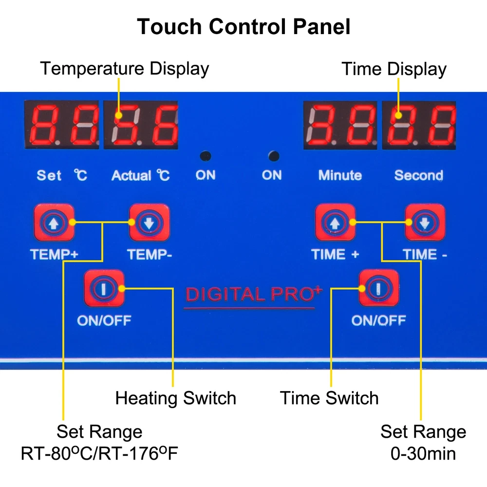 Product Description Russian evaluation article French Influencer Evaluation Video: Click the red link to watch : Digital Ultrasonic Cleaner American Internet Celebrity Tia & Darius Evaluation Video: 1-30L Digital Ultrasonic Cleaner Get a professional diamond ring cleaner at home!!! 40KHZ ultrasonic wave, deeply wash dirt, grime, oil on your valuable's surface, long hole, crevice, and shelter. Silver jewelry cleaner is ideal equipment for the optical shop, jewelry shop, watch shop, mobile phone repair shop, dental, office, home, and other stuff. 40kHz Deep Cleaning Digital Control Panel Premium SUS304 Material User-Friendly Design Key Features 40kHz Frequency With the 40kHz ultrasonic frequency and powerful transducer, our ultra jewelry cleaner does well in cleaning stuff with complex shapes, holes, or long-time stains. Adjustable Time/Temp Time is adjustable from 0 to 30 min, and temperature can be set within RT-176℉/RT-80℃, displayed on LED screens. The heating function dramatically improves cleaning efficiency. Note: When the ultrasonic function is turned on, the temperature will continue to rise even the set value is reached. 1.3/2/3/6/10/15/22/30 L Tank Capacity The sonic jewelry cleaner features a sizeable 1.3/2/3/6/10/15/22/30L(0.34/0.53/0.8/1.6/2.6/4/5.8/8 gal) tank, coming with a cleaning basket and a ball-shaped jewelry cleaning basket to reduce friction during washing. Note: The ball-shapd cleaning basket are not included in every model. If you have any problems, please contact us and we will deal with it for you. 304 Stainless Steel This ultrasonic parts cleaner is made from 304 stainless steel with a noise reduction lid and built-in handles on both sides, designed for durable use and easy cleaning. Humanized Details Heat dissipation holes on the side and back are designed for overheat protection, and a spare fuse is provided in case of over-current. The water outlet valve is convenient for drainage. Versatile Uses Perfect for home or professional use, our ultrasound cleaner machine is widely used to clean jewelry, glasses, watches, metal tools, dental equipment, lab utensils, etc. 30L Specifications Tank Material: Stainless Steel SUS304 Heating Power: 600W Ultrasonic Power: 600W Frequency: 40kHz Power Supply: AC110/220V 60Hz Tank Capacity: 26-30L (Since the bottom of the ultrasonic cleaner is a curved surface, the actual volume will be smaller.) Maximum Working Water : 22.37L Minimum Working Water : 5.32L Time Setting: 0 - 30 minutes (LED Digital Display) Temperature Setting: RT-176℉/RT-80℃ Transducer Quantity: 10 sets Tank Size (L x W x H): 19.69" x 11.81" x 7.87"/50 x 30 x 20 cm Product Size (L x W x H): 23" x 13" x 13.1"/58.5 x 33 x 33.3 cm Package Content 1 x Ultrasonic Cleaner 1 x Cleaning Basket 1 x Ball-Shaped Cleaning Basket 1 x Stainless Steel Cover 1 x Outlet Pipe 1 x Power Cord 1 x Instruction Manual 22L Specifications Tank Material: Stainless Steel SUS304 Heating Power: 600W Ultrasonic Power: 480W Frequency: 40kHz Power Supply: AC110/220V 60Hz Tank Capacity: 19-22L (Since the bottom of the ultrasonic cleaner is a curved surface, the actual volume will be smaller.) Maximum Working Water: 18.32L Minimum Working Water : 5.32L Time Setting: 0 - 30 minutes (LED Digital Display) Temperature Setting: RT-176℉/RT-80℃ Transducer Quantity: 8 sets Tank Size (L x W x H): 19.69" x 11.81" x 5.91"/50 x 30 x 15 cm Product Size (L x W x H): 23" x 13" x 11"/58.5 x 33 x 28 cm Product Weight: 27.8 lbs/12.6 kg Package Content 1 x Ultrasonic Cleaner 1 x Cleaning Basket 1 x Ball-Shaped Cleaning Basket 1 x Stainless Steel Cover 1 x Outlet Pipe 1 x Power Cord 1 x Instruction Manual 15L Specifications Tank Material: Stainless Steel SUS304 Heating Power: 400W Ultrasonic Power: 360W Frequency: 40kHz Power Supply: AC110/220V 60Hz Tank Capacity: 13.5-15L (Since the bottom of the ultrasonic cleaner is a curved surface, the actual volume will be smaller.) Maximum Working Water: 11.2L Minimun Working Water: 3.65L Time Setting: 0 - 30 minutes (LED Digital Display) Temperature Setting: RT-176℉/RT-80℃ Transducer Quantity: 6 sets Tank Size (L x W x H): 13" x 11.81" x 5.91"/33 x 30 x 15 cm Product Size (L x W x H): 15.75" x 13.78" x 11"/40 x 35 x 28 cm Package Content 1 x Ultrasonic Cleaner 1 x Cleaning Basket 1 x Ball-Shaped Cleaning Basket 1 x Stainless Steel Cover 1 x Outlet Pipe 1 x Power Cord 1 x Instruction Manual 10L Specifications Tank Material: Stainless Steel SUS304 Heating Power: 200W Ultrasonic Power: 240W Frequency: 40kHz Power Supply: AC110/220V 60Hz Tank Capacity: 9.6-10L (Since the bottom of the ultrasonic cleaner is a curved surface, the actual volume will be smaller.) Maximum Working Water:7.41L Minimun Working Water:1.91L Time Setting: 0 - 30 minutes (LED Digital Display) Temperature Setting: RT-176℉/RT-80℃ Transducer Quantity: 4 sets Tank Size (L x W x H): 11.81" x 9.45" x 5.91"/30 x 24 x 15 cm Product Size (L x W x H): 15" x 11" x 11.4"/38 x 28 x 29 cm Package Content 1 x Ultrasonic Cleaner 1 x Cleaning Basket 1 x Ball-Shaped Cleaning Basket 1 x Stainless Steel Cover 1 x Outlet Pipe 1 x Power Cord 1 x Instruction Manual 6L Specifications Tank Material: Stainless Steel SUS304 Heating Power: 200W Ultrasonic Power: 180W Frequency: 40kHz Power Supply: AC110/220V 60Hz Tank Capacity: 5.8-6L (Since the bottom of the ultrasonic cleaner is a curved surface, the actual volume will be smaller.) Maximum Working Water: 4.82L Minimun Working Water: 1.25L (Since the bottom of the ultrasonic cleaner is a curved surface, the actual volume will be smaller.) Time Setting: 0 - 30 minutes (LED Digital Display) Temperature Setting: RT-176℉/RT-80℃ Transducer Quantity: 3sets Tank Size (L x W x H): 11.81" x 5.91" x 5.91"/30 x 15 x 15 cm Product Size (L x W x H): 15" x 7.9" x 10.8"/37.5 x 20 x 27.5 cm Package Content 1 x Ultrasonic Cleaner 1 x Cleaning Basket 1 x Ball-Shaped Cleaning Basket 1 x Stainless Steel Cover 1 x Outlet Pipe 1 x Power Cord 1 x Instruction Manual 3L Specificati