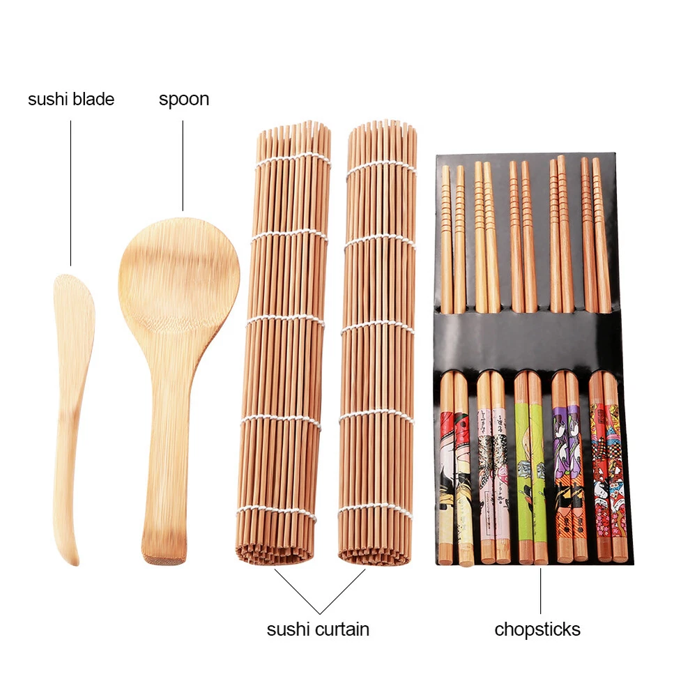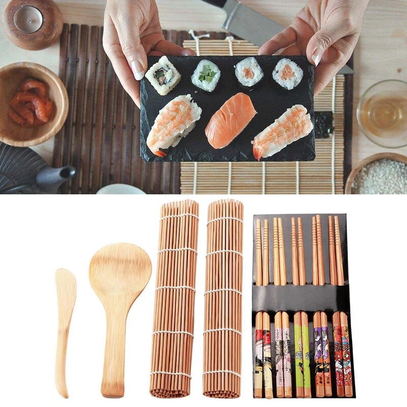 Description: If you are confused about how to make sushi easily and looking for an excellent sushi kit, then our kit must be your best choice. The sushi set are made of bamboo, natural and healthy with no-toxic. This sushi marking set include 1 spoon, 5 pairs of chopsticks, 1 sushi blade and 1 sushi curtain, enough for your daily use. Features: 1. Made of bamboo, natural, healthy with no-toxic and environmental friendly. 2. Each bamboo stick is carefully polished, straight and , comfortable and safe without scratch. 3. The sushi curtain is strong and , not easy to break, It is high temperature resisting and not easy to mold. 4. Exquisite workmanship and high quality materials, it's practical and suitable for family office party use . 5. A good helper for sushi lovers, beautiful and . Can be as a gift for you and your friend those sushi lovers. Specification: Condition: Brand New Item Type: Sushi Kit Material: Bamboo Color: Brown Size: Chopsticks: 22.5cm / 8.86in Spoon: 20 * 6cm / 7.87 * 2.36in Sushi blade: 17 * 3cm/ 6.70 * 1.18in Sushi curtain: 24 * 22.5cm / 9.45 * 8.86in Weight: Approx. 185g Care Instruction: Hand wash only, don't expose to high heat. Use mineral oil occasionally to after they dry thoroughly to extend the of this kit. Package Included: 1 x spoon 1 x sushi blade 2 x sushi curtain 5 x pairs of chopsticks Note: Please allow 1~2cm error due to manual measurement. Thanks for your understanding.