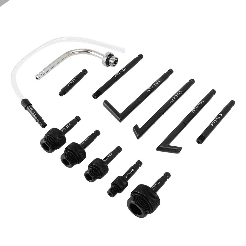 Feature: 1. 13pcs transmission fluid oil fill adapter kit with high quality 2. Produced from premium carbon steel material, anti-rust and durable 3. High strength, high hardness, not easy to deform and reliable to use 4. Comes with a storage case, which is convenient for storage and transportation 5. It includes a variety of adapters to meet your needs, convenient and practical to use Specification: Features: 13pcs transmission fluid oil fill adapter kit with high quality. Produced from premium carbon steel material, anti-rust and durable. High strength, high hardness, not easy to deform and reliable to use. Comes with a storage case, which is convenient for storage and transportation. It includes a variety of adapters to meet your needs, convenient and practical to use. Specification: Condition: 100% Brand New Item Type: Oil Fill Adapter Material: Carbon Steel Attachment Specification: ATF-101: Fit for Ford 1/8-27 (NPT) ATF-102: Fit for Nissan, etc. ATF-103 ATF-104 ATF-105: Fit for Mini Copper M10x1.0 ATF-106: Fit for DSG M24x1.5 ATF-107: Fit for CVT M22x1.5 ATF-108: Fit for M18x1.5 ATF-109: Fit for Mercedes M12x1.5 ATF-110: Fit for M30x1.5 ATF-111: Universal Flexible 300mm, fit for Hyundai/ Kia etc. ATF-112: Fit for 5/16-24 (UNF) ATF-113: Fit for M18x1.5 Package List: 1 Set x 13pcs Oil Fill Adapter(Box color red or blue random)