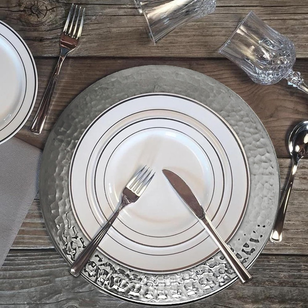 Brightalk 13-Inch Stainless Steel Hammered Charger Plates, Silver Dinner Plate Chargers Set of 6, Round Server Ware Reliable Material: Round charger plates are made of high-quality stainless steel, with excellent rust resistance, easy to care and reusable. Attractive design: These charger plates have a high polished finish with hammered surface eye-catching design. Fit under plates/bowls to prevent your table from spill, charger plate is an elegant essential decoration for your table setting. Ideal for any occasions, these charger plates are perfect option for parties, birthdays, engagements, baby showers, home dinners etc. Single Charger Plate Measurements: 13-Inch Diameter, 11oz(313g/0.69lb). Lightweight and stackable, a set of 6 is great ideal for daily use at home. SHIPPING - We offer FREE shipping on all orders! - We ship within 3 business days of payment, usually sooner - We use a selection of shipping services such as UPS, FedEx, USPS etc - We only ship to the lower 48 states, no APO/FPO addresses or PO Boxes allowed International buyers – please note: Import duties, taxes, and charges aren't included in the item price or postage cost. These charges are the buyer's responsibility. - Please check with your country's customs office to determine what these additional costs will be prior to bidding or buying. - We have confidence in our products, but if you are not fully satisfied please contact us within 30 days of purchase and you will get full refund. * Order Cancellation Policy ** You can return a product for up to 30 days from the date you purchased it. 1. The seller reserves the right to cancel the special case only due to eBay cancellation fee. 2. The decision of seller is the final. 3. The seller will respond to the cancellation request within 2 business days. Please wait for the result of cancellation. 4. In case the cancellation is not completed by some reasons, the buyer can follow the options below to get the refund. 4.1 The buyer can reject the item when it arrives. 4.2 The buyer can send the item back to the seller within 30 days If the buyer receives item (USA Shipment ONLY). The seller will provide the FREE return label to the buyer when the buyer opens " Return Item" case on eBay by using the reason as "Change my mind" ONLY. 5. When buyer has placed the order. The order will be processed and completed by automatic warehouse system within 5 minutes. In case that buyer sends the cancellation request after 5 minutes of placing the order, the request will be rejected. **Sending direct message to cancel the order is not allowed for every case.* Return Policy For the return case - If buyer would like to return the items for refund or replacement, please CONTACT SELLER to receive the free return label from seller. The refund or replacement will be processed with the tracking number of return label which is provided by seller only. The other ways of return which are not approved by seller will not be processed for the refund or replacement. CUSTOMER SERVICE - We try our best to make sure every customer is completely satisfied. - If there's a problem, feel free to message us! - We're happy to help.