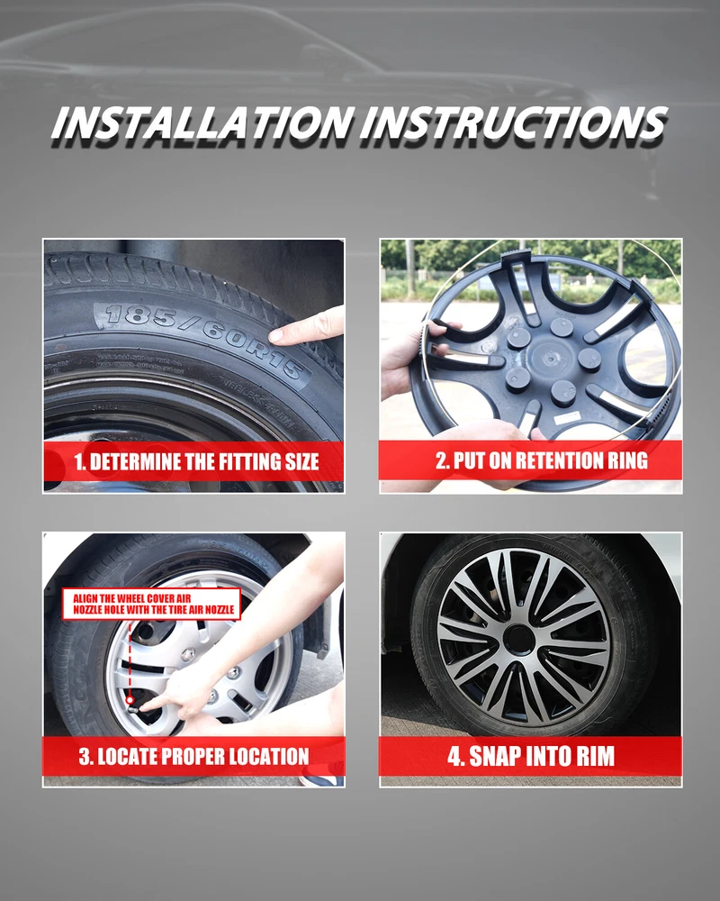 Store Categories Other Car Refrigerator Front Bumper Rear Bumper Fender Flares Inner Fenders Side Steps Running Board A-Pillar Light Mount Brackets Headlights Taillights Fog Lights LED Headlights LED Taillights LED Fog Lights Jeep Chevrolet Ford Toyota Dodge GMC About This Item ❗❗ PERFECT FIT: This wheel hub cap is specifically designed to perfectly fit for 13-inch wheels, ensuring a seamless match and enhanced aesthetics. It complements the overall design of the vehicle, elevating its visual appeal. ❗❗ HIGH-QUALITY MATERIAL: Constructed from high-quality materials, this wheel hub cap guarantees durability and longevity. It withstands various road conditions and environmental factors encountered during daily driving, maintaining its pristine condition. ❗❗ EASY INSTALLATION: Installing this wheel hub cap is a breeze and requires no specialized tools or modifications. It comes with a user-friendly system, allowing for a hassle-free installation process by following the provided instructions. ❗❗ PROTECTIVE FUNCTION: Besides its aesthetic appeal, this wheel hub cap serves as a protective barrier for the wheels. It prevents scratches and potential damage caused by stones, debris, or other objects, safeguarding the wheel's surface. ❗❗ AFTER-SALES SERVICE: If There Is a Loss of Product Parts, or Any Parts of The Problem, We Can Provide After-Sales Service, Please Contact Us on The Order Page. Product Specificataion ❗❗ Type: Hub caps ❗❗ Number in Pack: 4 ❗❗ Color: Black and Silver Lacquer ❗❗ Material: ABS ❗❗ Compatible Wheel Diameter: 13 in ❗❗ Finish: Glossy ❗❗ Installation Type: Snap-On ❗❗ Model: Universal Hubcap for Iron Wheels , Not fit for 1988-91 Honda Civic H-back/Sedan 13 Inch Steel Wheel Package List ❗❗ 1 Set of 4 Hub caps and 4 retention rings Payment Delivery details Terms of sales About us Contact us Payment We accept PayPal, credit card , Apple Pay & Google Pay etc. Delivery details All items will be shipped within 1-3 business days after payment received, we will try our best to ship out as soon as we can, hope for your understanding. Please double confirm your address and contact information, which will help the delivery faster and more accurately. Note :buyers who purchase international products need to pay import tariffs!!! Terms of sales Professional installation is highly recommended. Any problem of the item please feel free to contact us first , please D o Not leave negative feedback before that, or simply return it within 60 Days in original condition. We will resolve it for you ASAP. About us Any questions please do not hesitate to contact us directly by eBay message . We will reply you within 24 hours asap, thanks for your understanding. Contact us Should you have any problem or require any further information please feel free to contact us . If you are satisfied with our product and service, please kindly leave us a positive feedback. Popular Categories On Mar 15, 2025 at 08:05:38 PDT, seller added the following information: